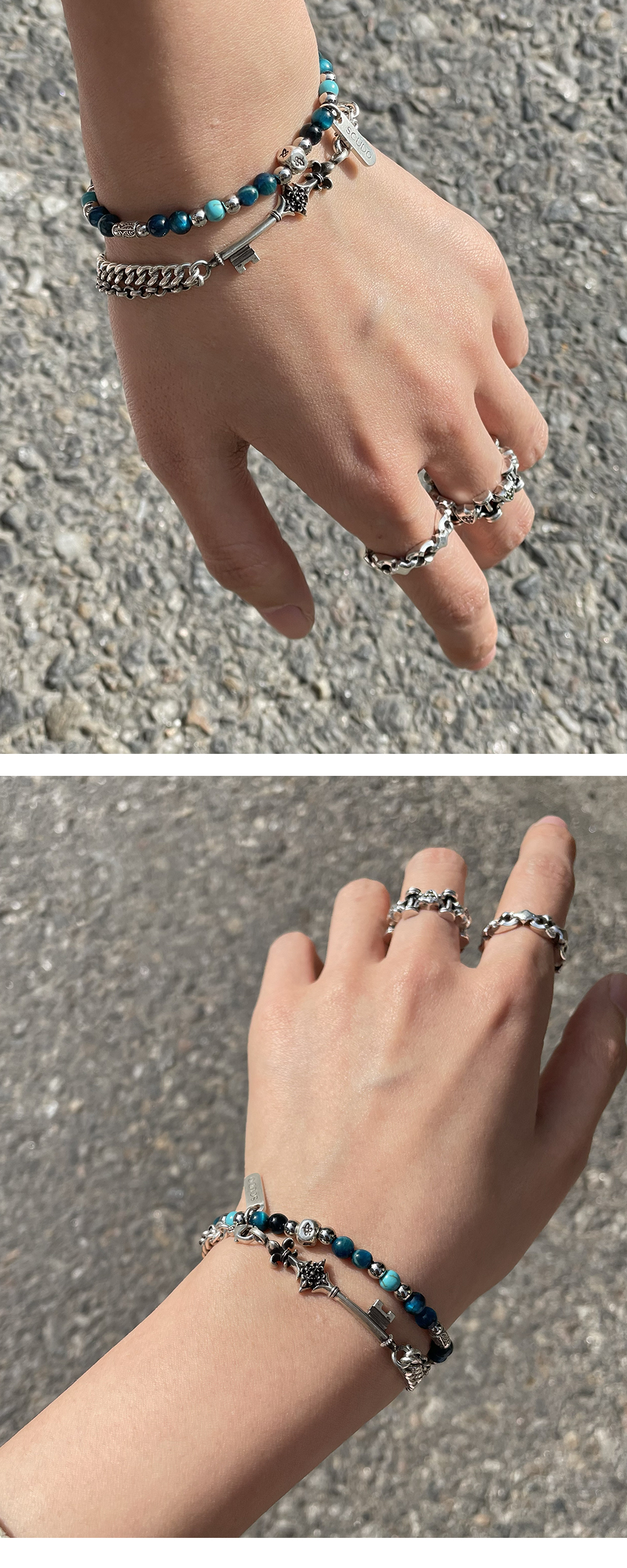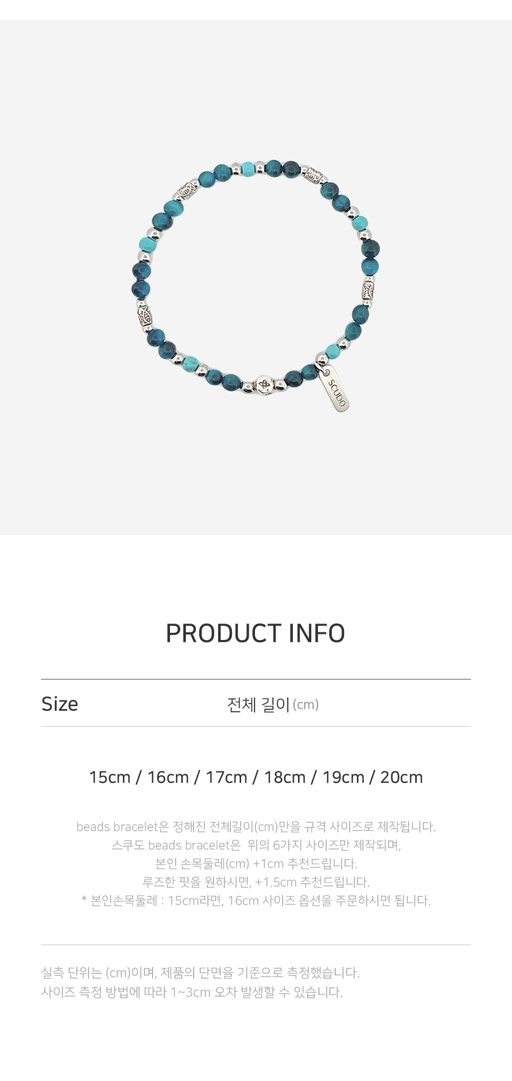 [beads line] 스쿠도 링크와 다양한 무늬의 핸드메이드 카렌실버로 이루어진 비즈 브레슬릿 블루 호안석과 터키석으로 이루어진 컬러 비즈 브레슬릿 *고산족 카렌실버는 수공예 핸드메이드 실버이기때문에, 같은 디자인이여도 모두 조금씩 다르며, 입고되는 디테일이 동일 할 수 없습니다. 그렇기 때문에, 비슷한 크기의 다른 디테일의 카렌실버 참으로 랜덤 되어 제작될 수 있습니다. *비즈 브레슬릿 특성상 A/S가 불가능 합니다. 스쿠도의 beads bracelet은 맞춤 handcraft 주얼리로, 3일 제작기간이 소요됩니다. (주말 / 공휴일 제외) 추가 제품 상담이 필요하시면, 문의 부탁드립니다.