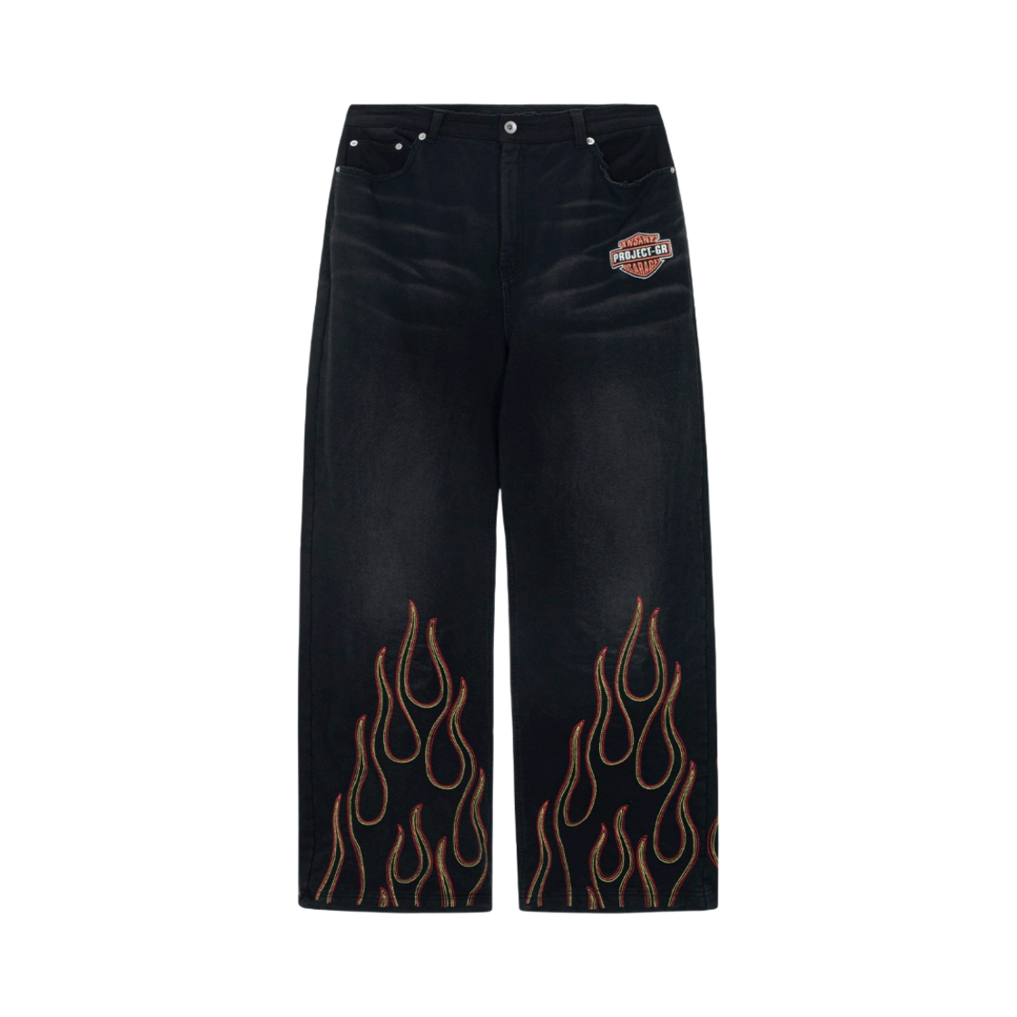 프로젝트 G/R x 인세인개러지 플레임 스웨트팬츠 블랙