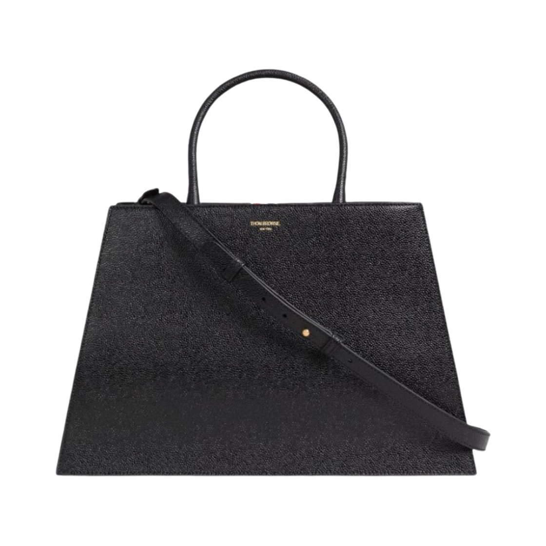 톰브라운 페블 그레인 레더 미디움 트라페즈 토트백 블랙