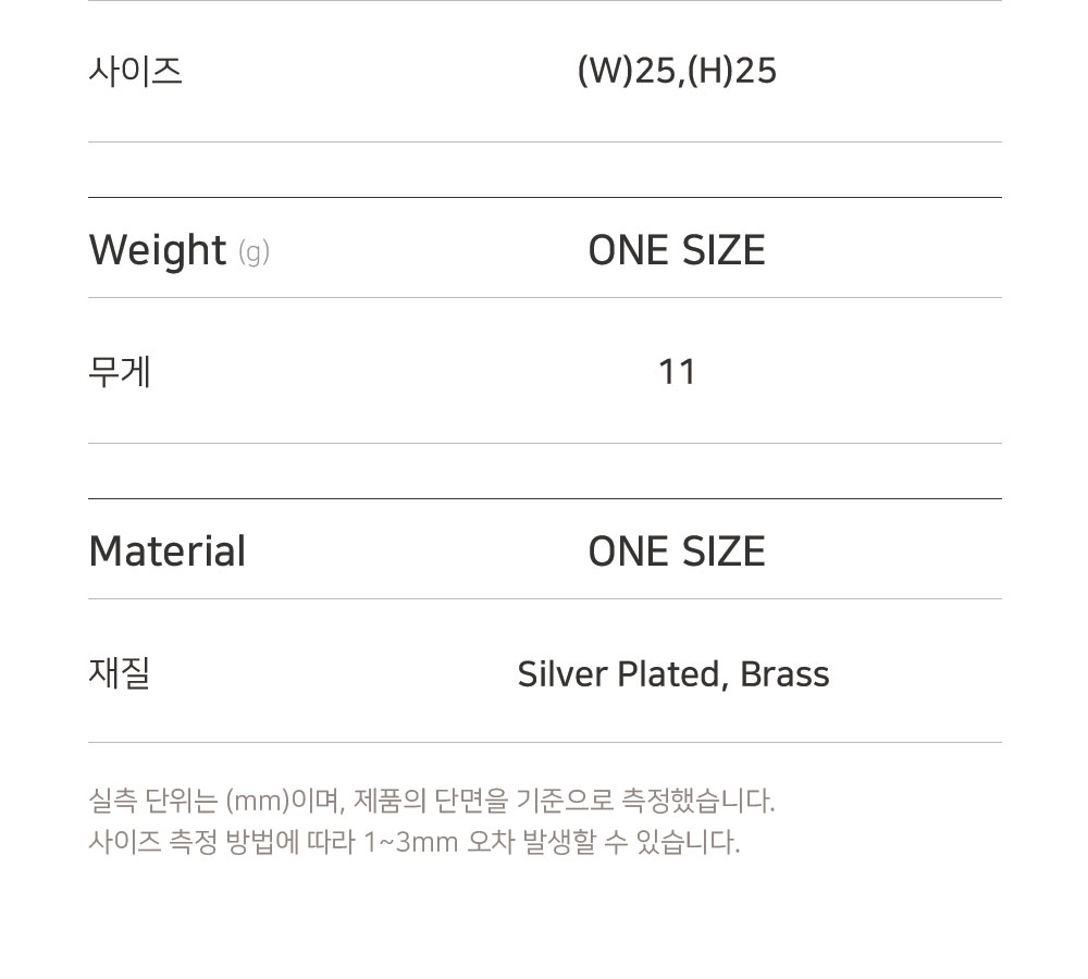 측정 방법에 따라 사이즈에 일부 오차가 있을 수 있습니다.