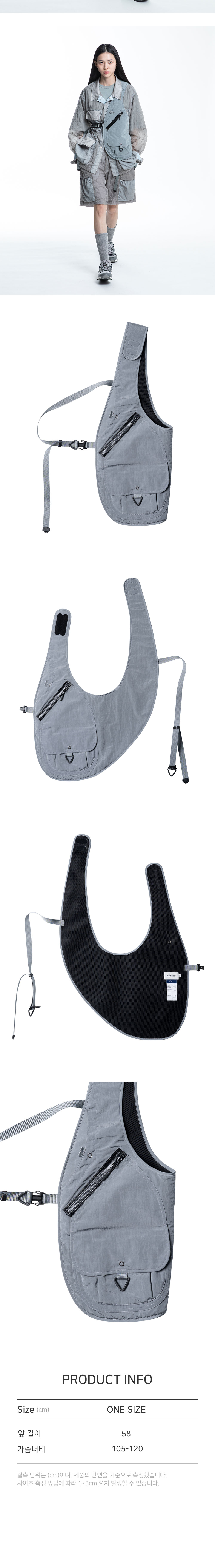 -가방 없이 떠나는 가벼운 하이킹이나 산행. 그리고 일상속에서 스타일리쉬하게 즐길 수 있는 제품 -어깨의 벨크로 여밈으로 길이 조절 -앞품의 웨빙으로 가슴 너비 조절 -이너로 연출하거나, 아우터에 레이어링 연출 -총 4군데의 포켓으로 수납력 극대화 -상단의 주머니는 자주 사용하는 물건 보관, 지퍼 주머니는 중요한 소지품, 하단의 입체 포켓은 부피가 큰 제품을 수납. 각각의 목적에 맞게 설계 -내구성이 좋은 나일론 소재, 고급스러운 광택과 생활 방수 지원