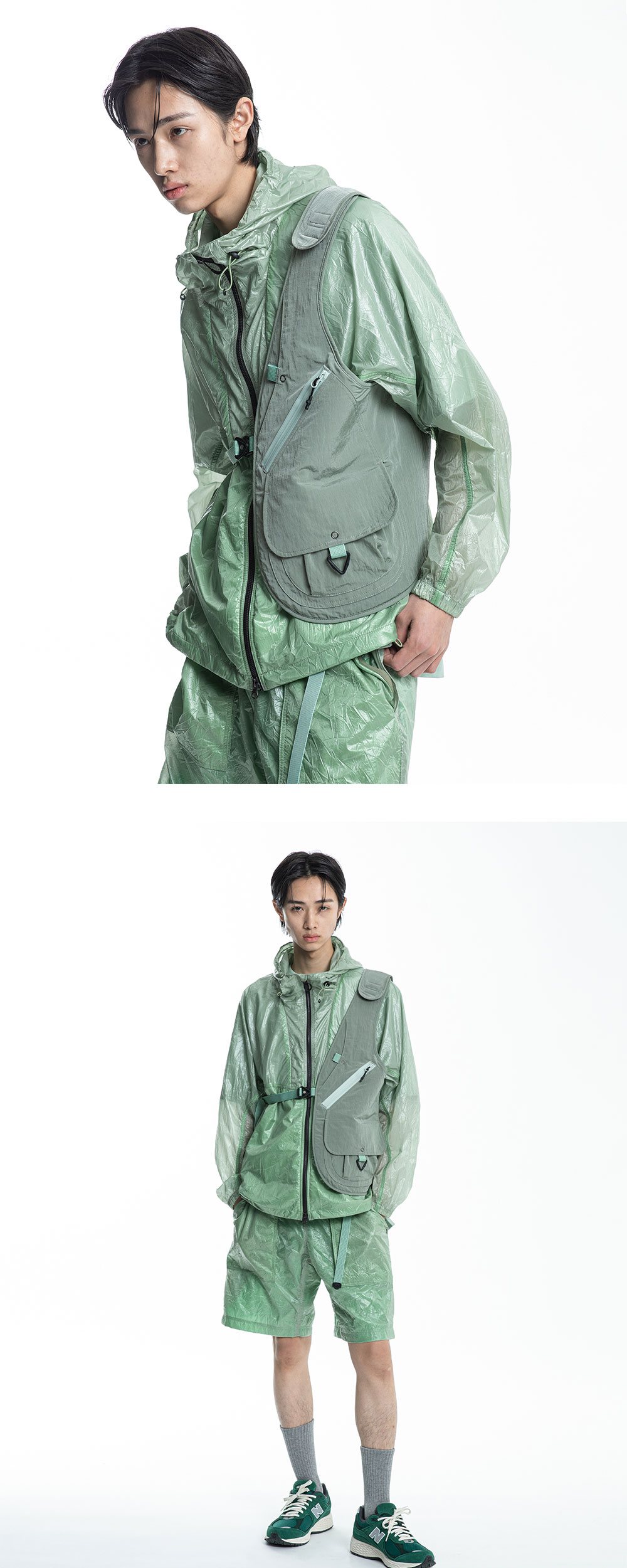 -가방 없이 떠나는 가벼운 하이킹이나 산행. 그리고 일상속에서 스타일리쉬하게 즐길 수 있는 제품 -어깨의 벨크로 여밈으로 길이 조절 -앞품의 웨빙으로 가슴 너비 조절 -이너로 연출하거나, 아우터에 레이어링 연출 -총 4군데의 포켓으로 수납력 극대화 -상단의 주머니는 자주 사용하는 물건 보관, 지퍼 주머니는 중요한 소지품, 하단의 입체 포켓은 부피가 큰 제품을 수납. 각각의 목적에 맞게 설계 -내구성이 좋은 나일론 소재, 고급스러운 광택과 생활 방수 지원