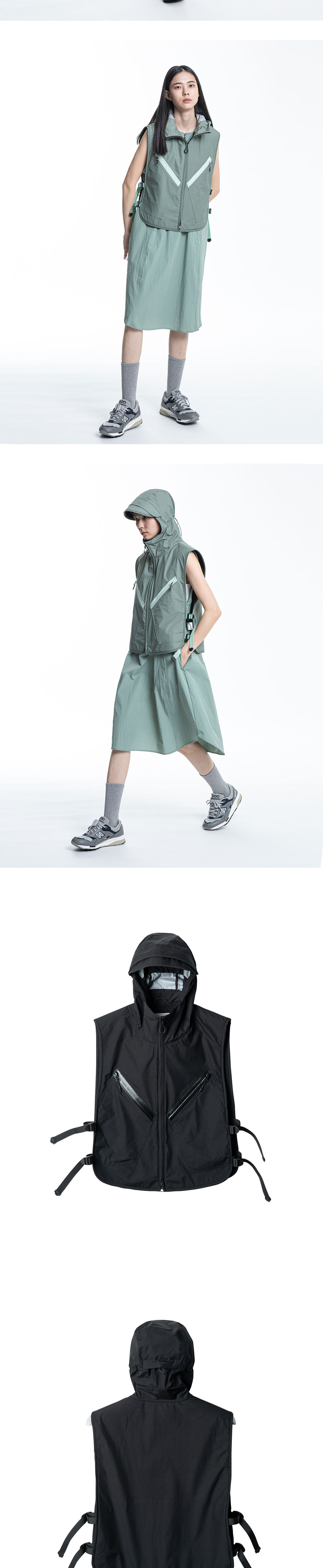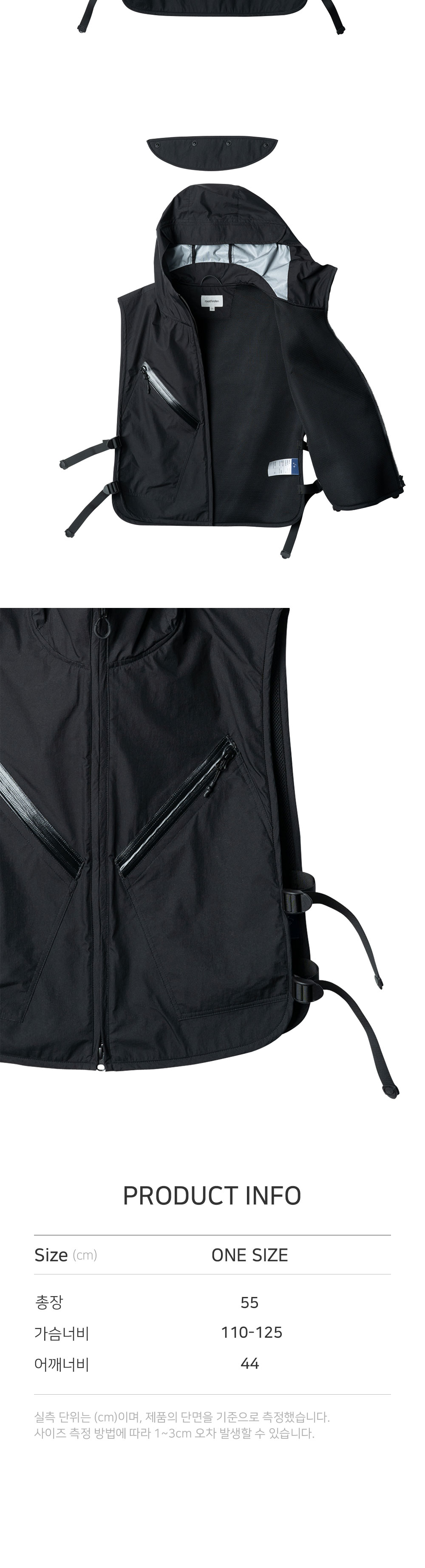-베스트 형태의 후디 크롭 재킷 -이너로 연출하거나, 아우터에 레이어링 연출 -사이드 웨빙 어저스터 디테일로 가슴 너비 조절 -가슴의 YKK 아쿠아 지퍼 포켓 -앞섶 2-Way 지퍼 -경량 나일론에 에어로 워싱 가공으로 자연스러운 터치와 기능성 멤브레인을 덧대어 완성한 방수, 방풍, 투습에 뛰어난 기능성 3-레이어 소재 -쾌적한 착용을 위한 에어 메쉬 안감