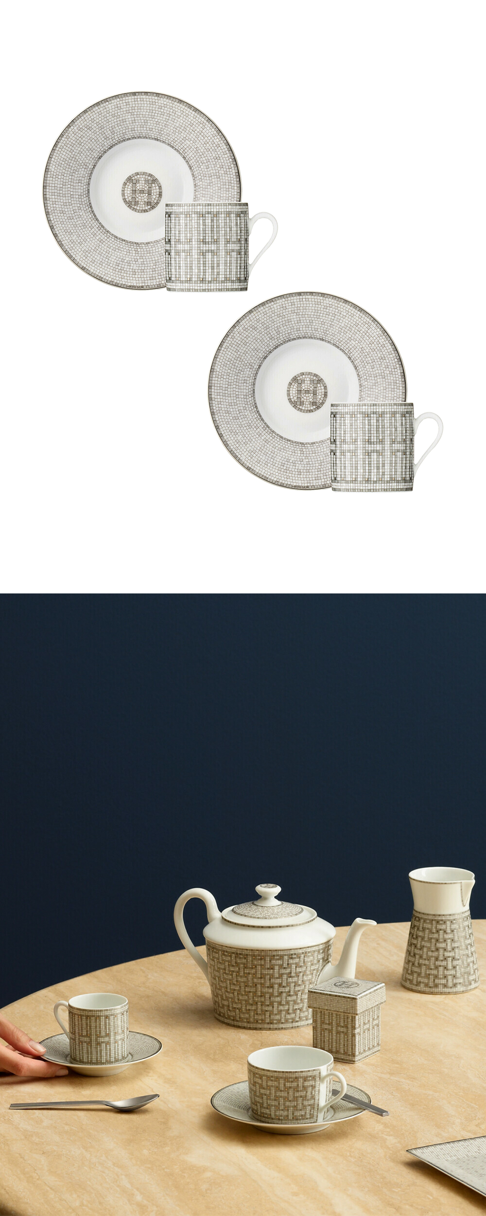 에르메스 모자이크 오 24 커피 컵 & 소서 플래티넘 (2개 세트)