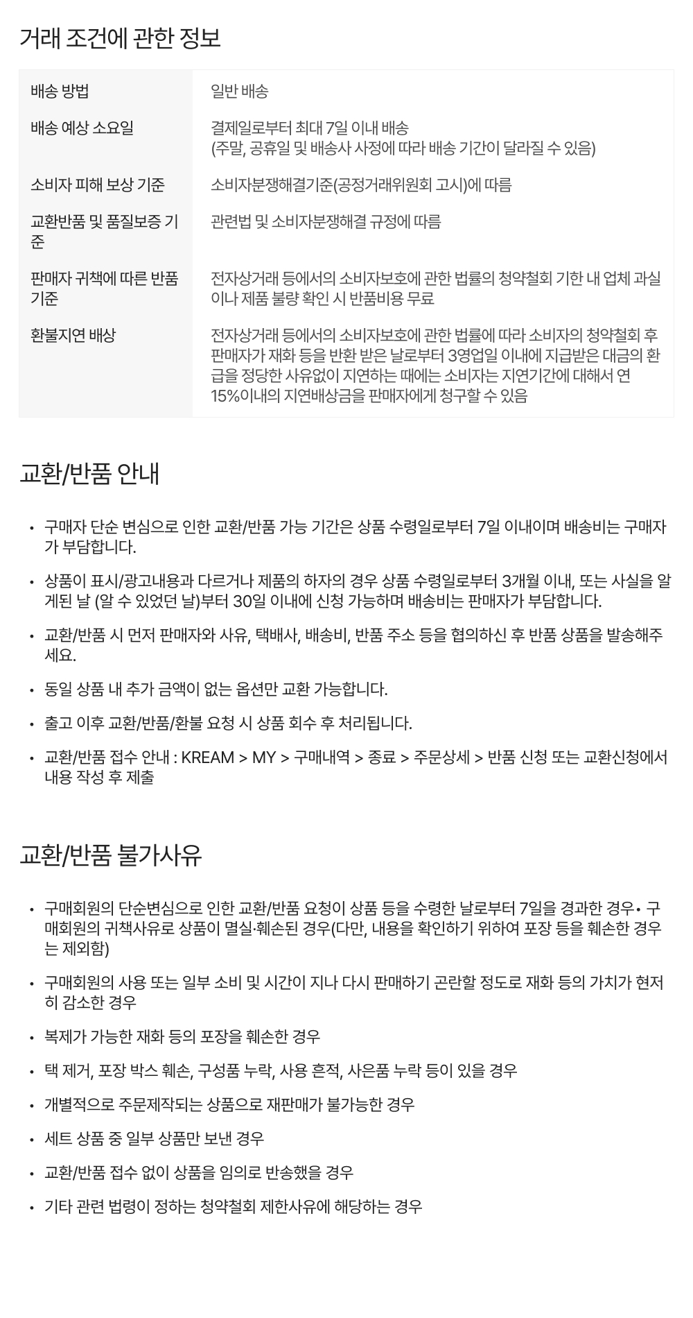교환 및 반품 안내
