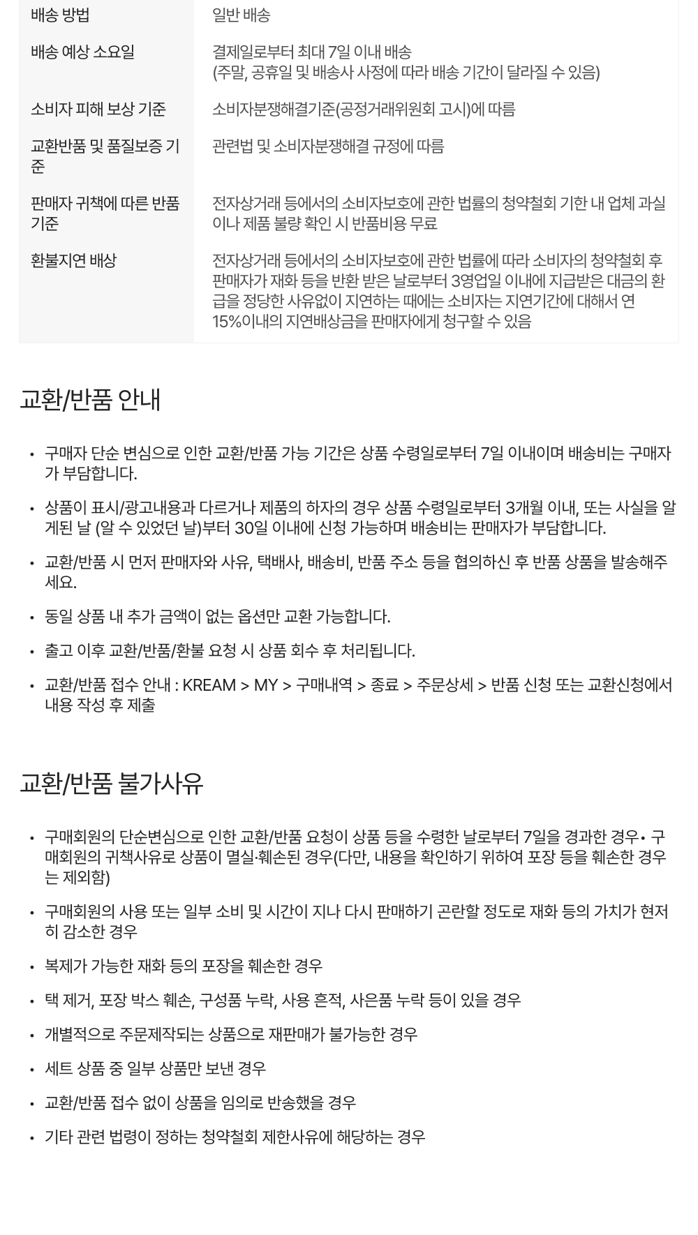 교환 및 반품 안내