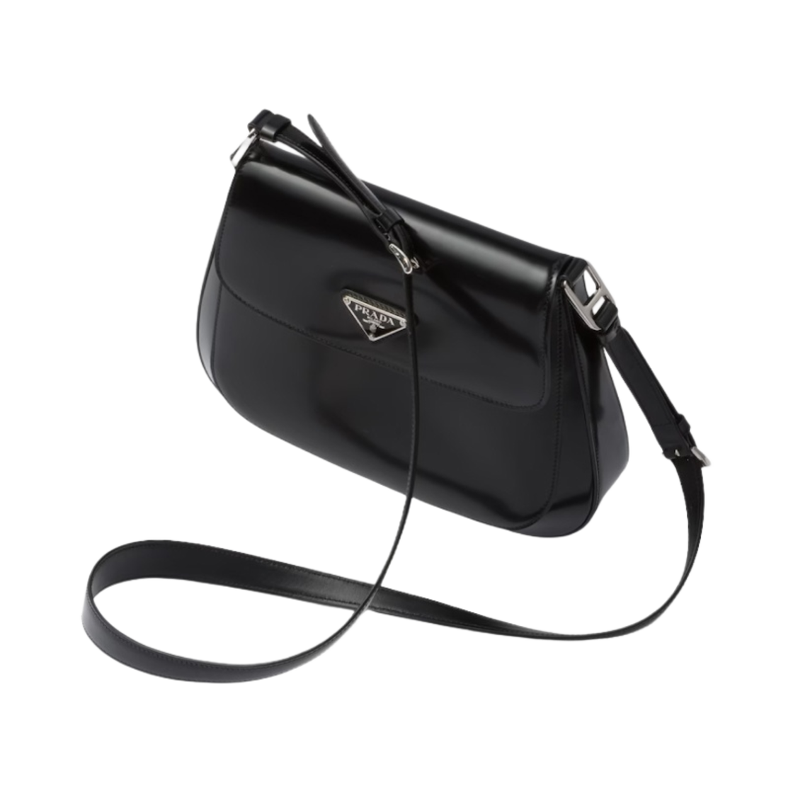 프라다 플랩 클레오 브러쉬드 레더 숄더백 블랙
