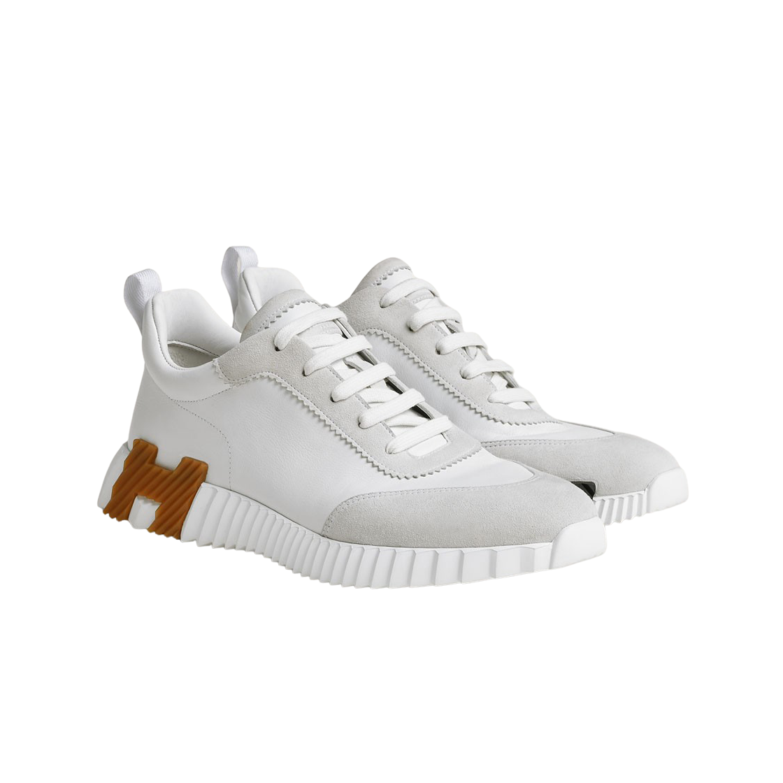 Hermes Bouncing Sneakers Calfskin Suede Goatskin & Blanc