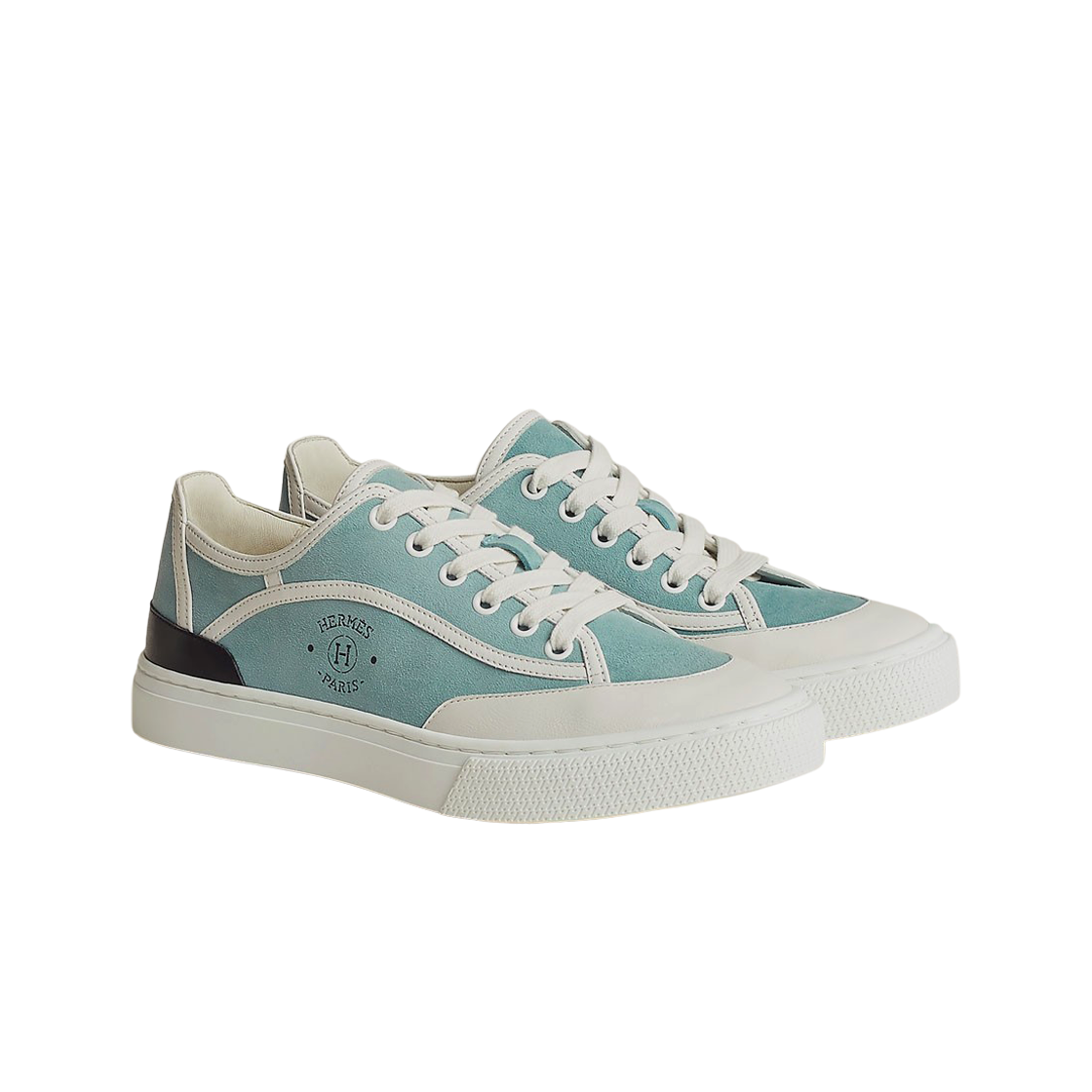 (W) Hermes Get Sneakers Suede Goatskin Calfskin & Vert Deau Blanc