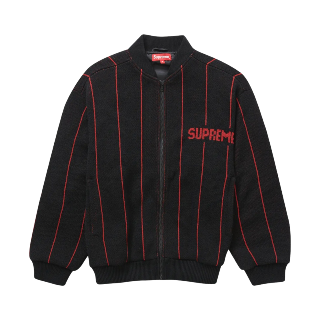 Supreme Pinstripe Varsity Zip Up Sweater Black - 23SS