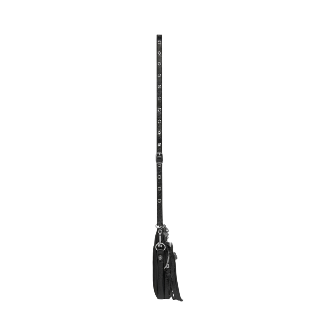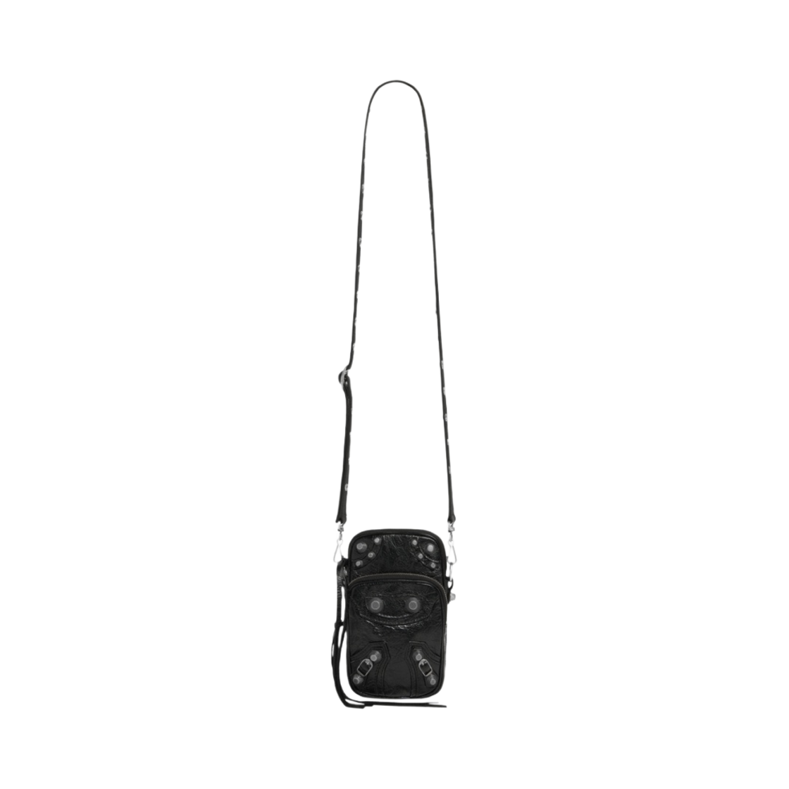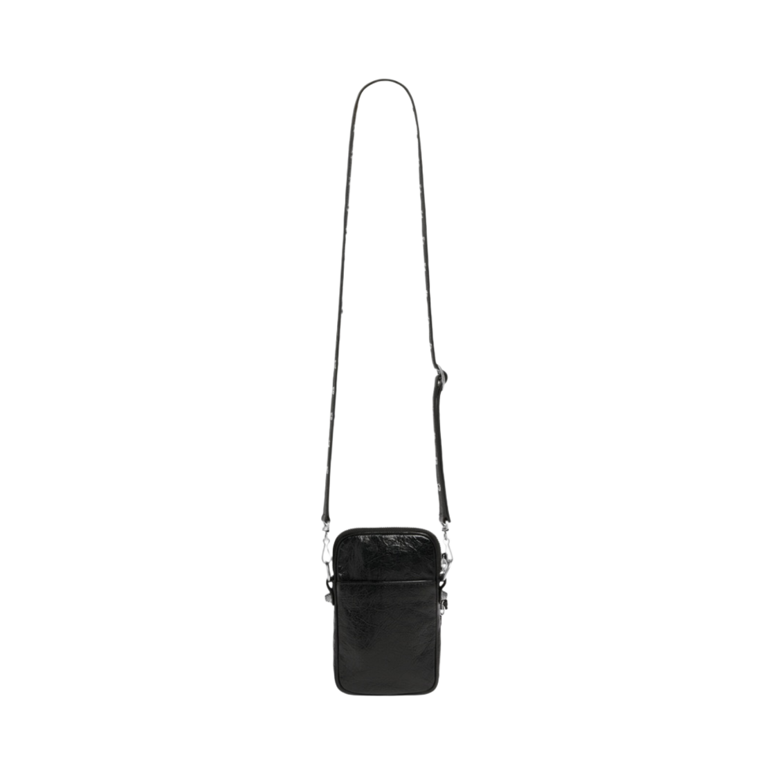 Balenciaga Arena Lambskin Aged Silver Hardware Le Cagole Phone Holder Black