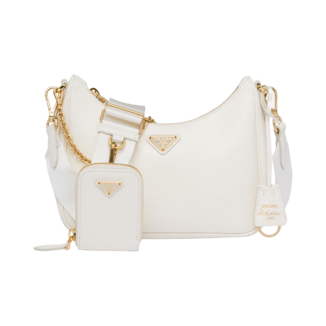 프라다 리에디션 2005 사피아노 레더 숄더백 화이트
