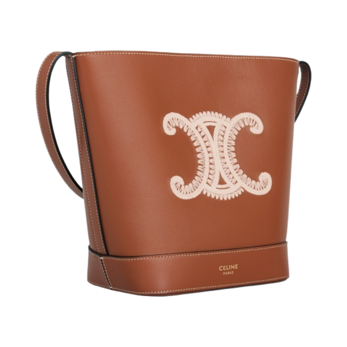 Celine Small Bucket Cuir Triomphe in Smooth Calfskin with Triomphe Embroidery Tan