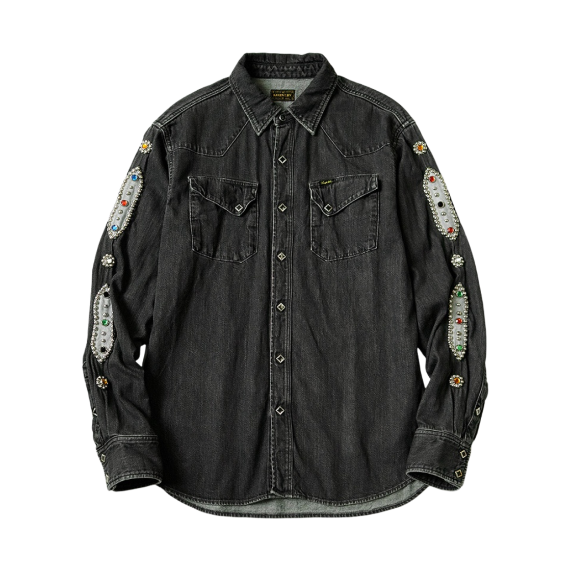 Kapital 8 oz. Denim Western Gemstone Long Sleeve Shirt Black
