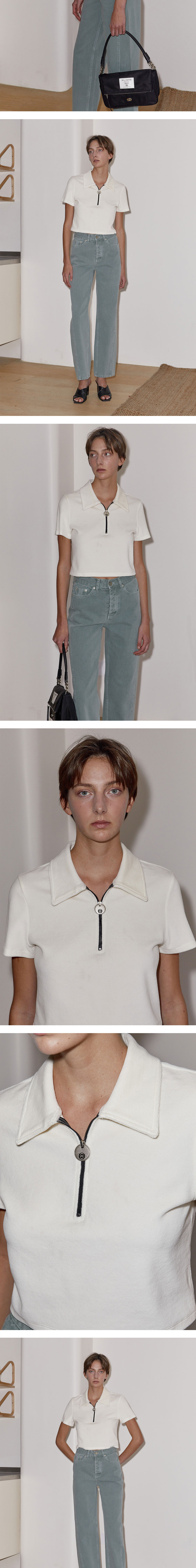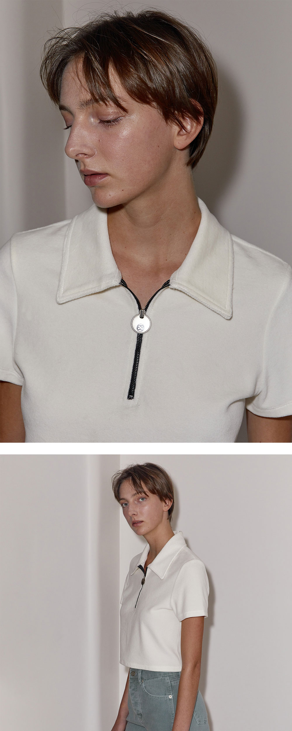 엔오르 우먼 벨루어 집업 폴로 탑 아이보리