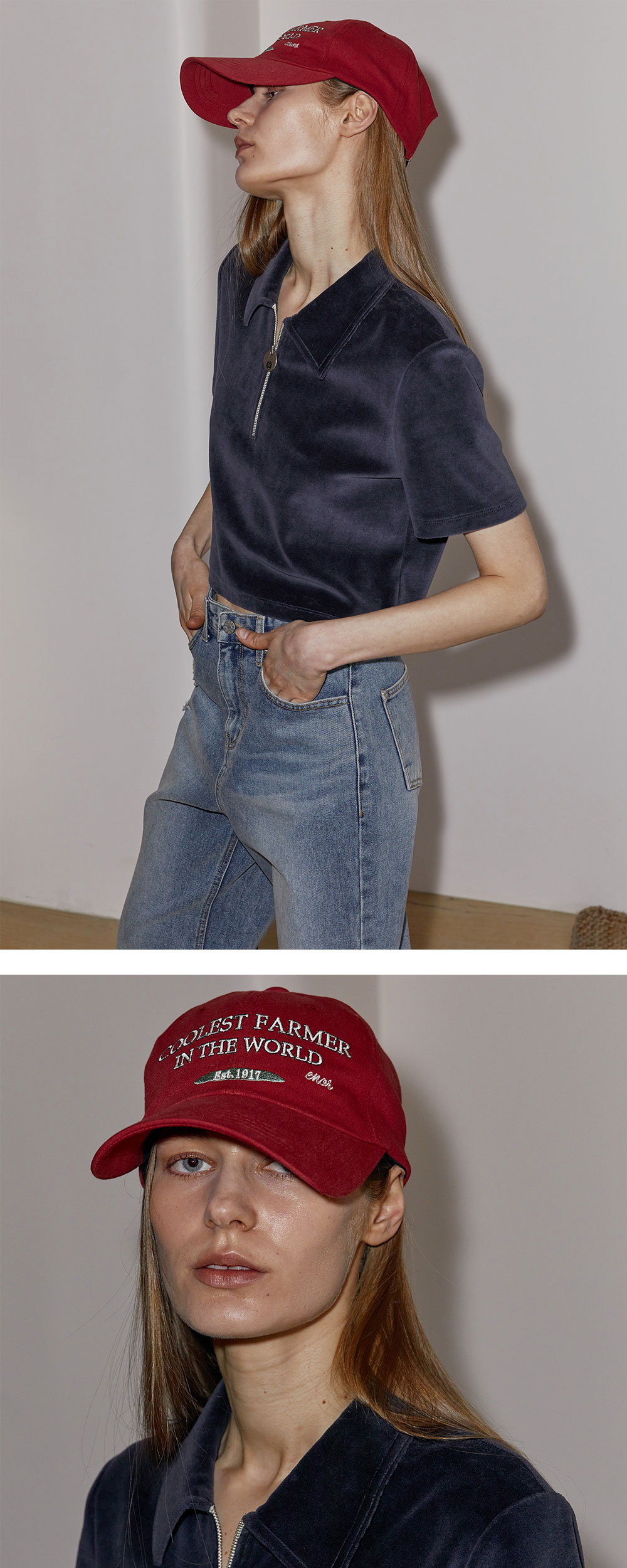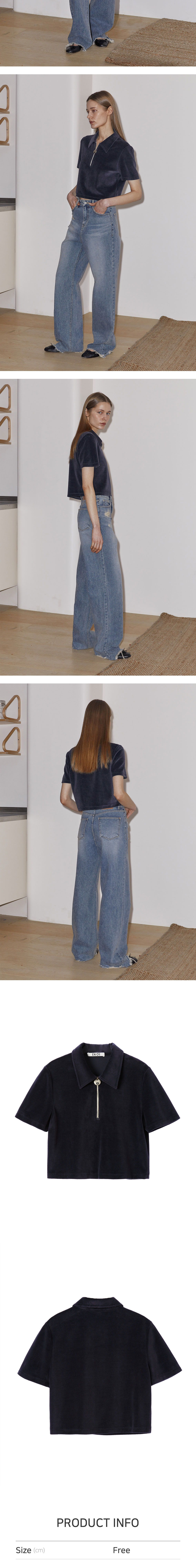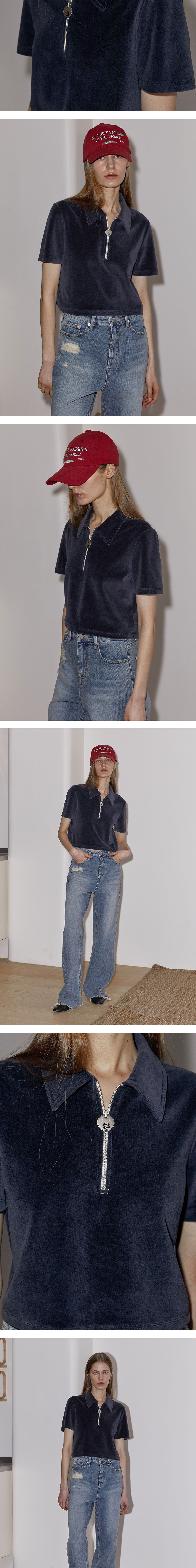 엔오르 우먼 벨루어 집업 폴로 탑 네이비