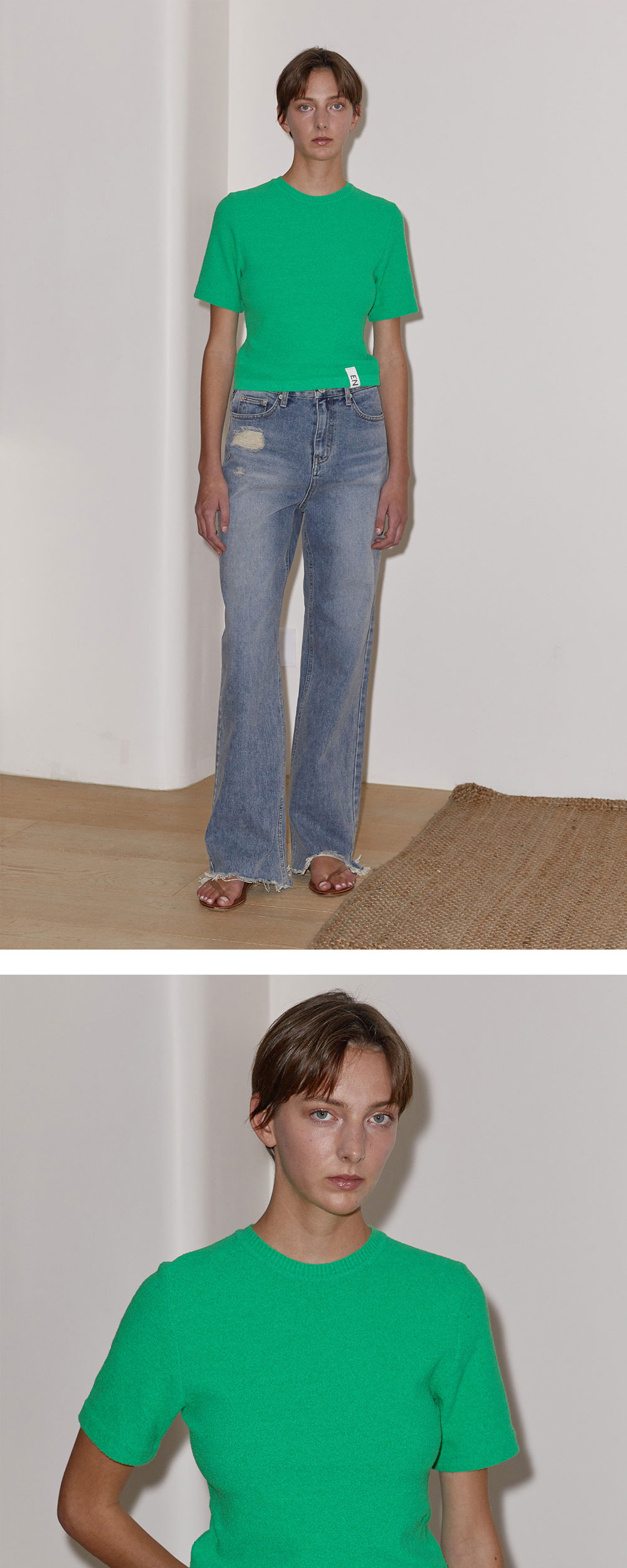 엔오르 우먼 아웃라벨 부클 니트 탑 그린
