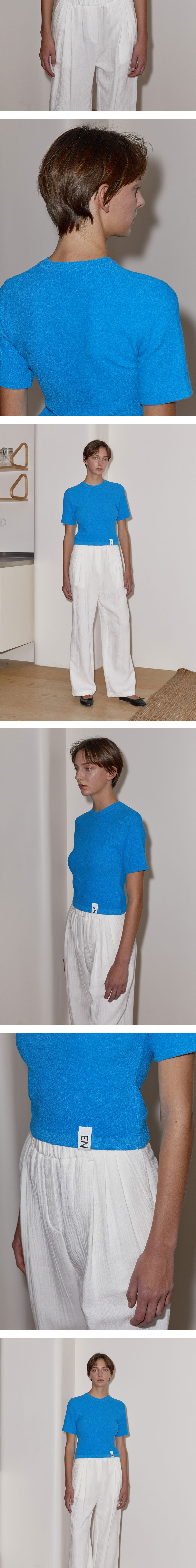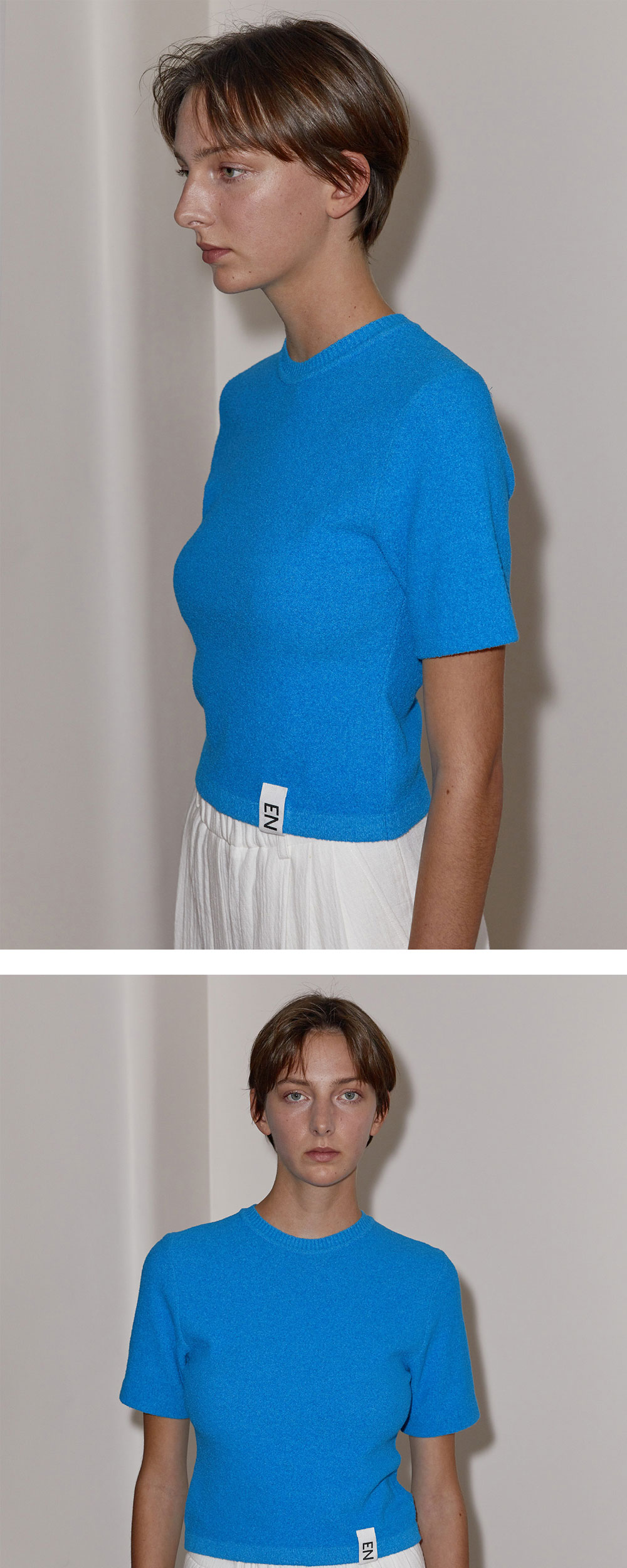 엔오르 우먼 아웃라벨 부클 니트 탑 블루