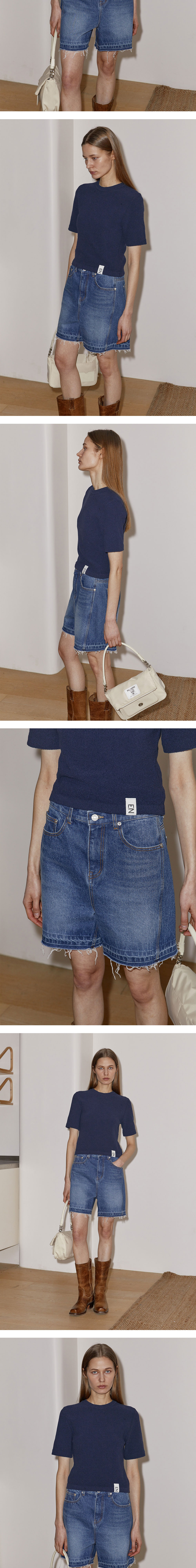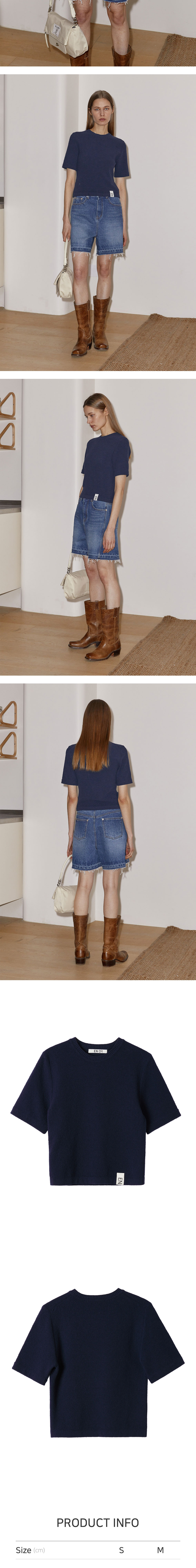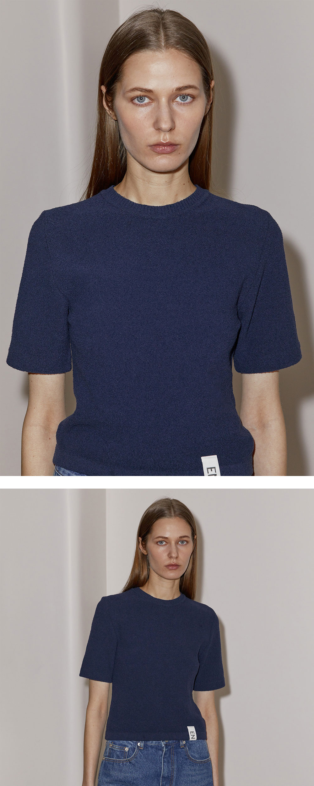 엔오르 우먼 아웃라벨 부클 니트 탑 네이비