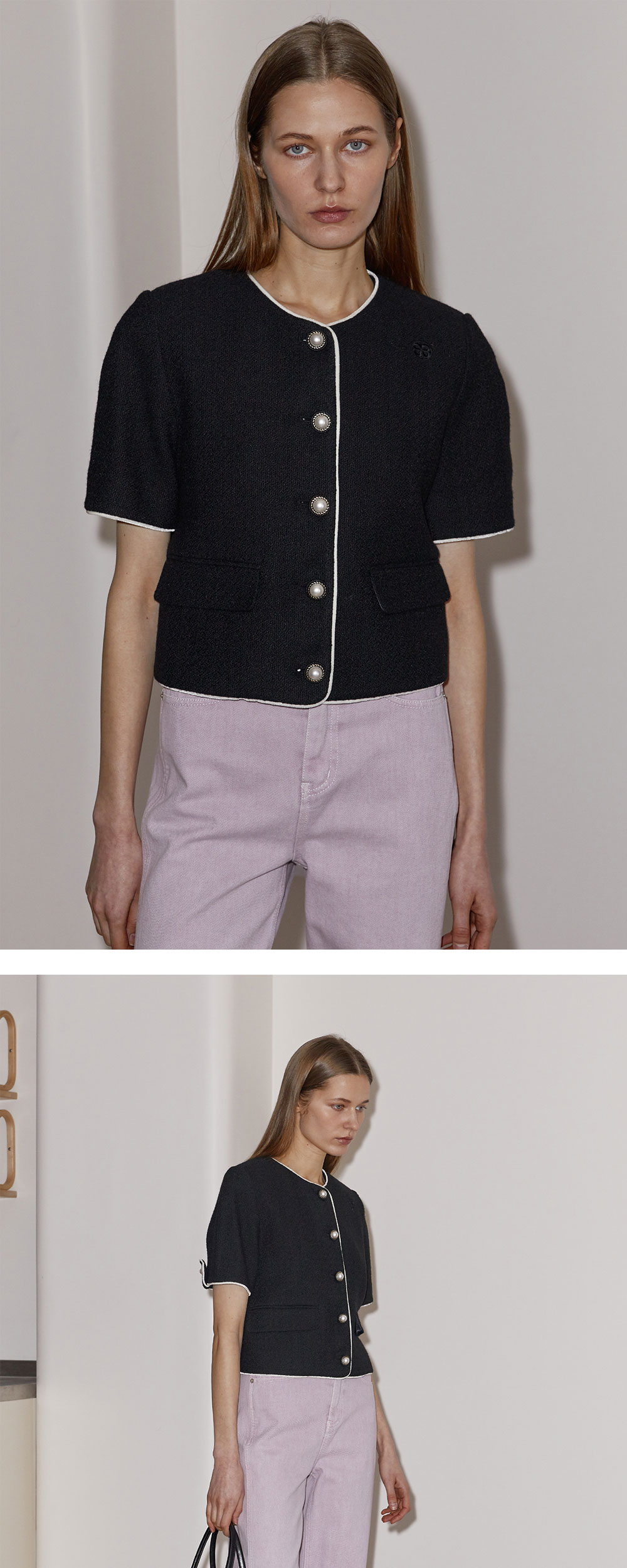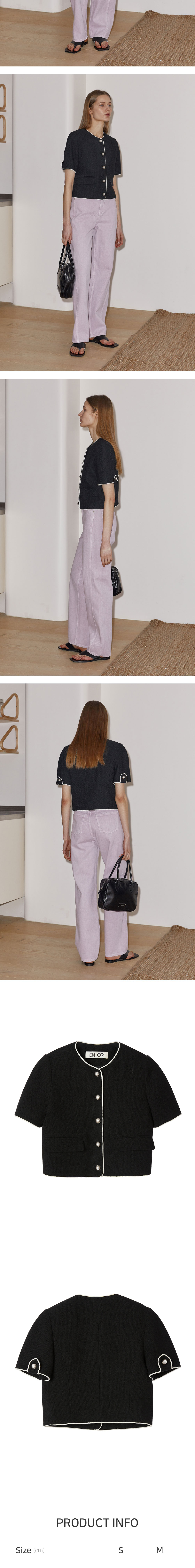 엔오르 우먼 벨벳 트리밍 코튼 크롭 자켓 블랙