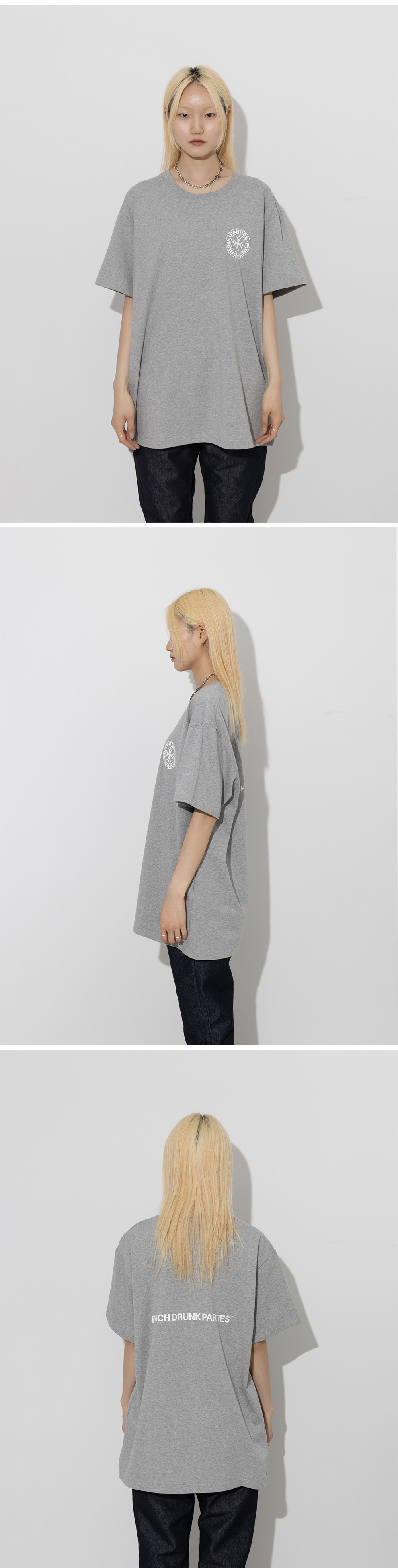 펀치 드렁크 파티즈 서클 로고 네로우 티 그레이