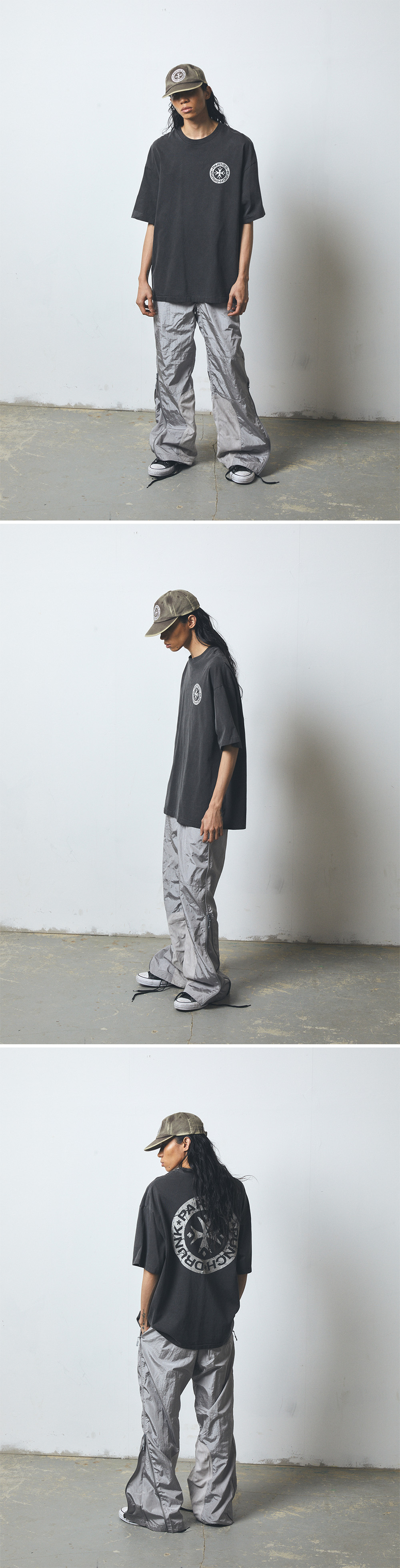 밀도 높은 16수 싱글 면 100%의 원단으로 비침이 적고 단단해, 신체 실루엣 보완이 가능합니다. 오버사이징 된 넓은 너비에, 소매가 길어 캐쥬얼하고 편안한 무드가 강한 제품입니다. 70년대 수소봉제 기법으로 소매와 밑단을 마감, 오랜 시간 변형 및 손상을 최소화 하여 활용 가능합니다. 가먼트 다이의 고급스러운 색감으로 마무리 된 제품이며 단단하면서도 부드러운, 훌륭한 터치감을 가집니다. 실리콘 날염 부분으로의 이염은 제품 특성입니다. 염색 공법 상 자연스러운 물빠짐이 있습니다. 반드시 찬물에 단독세탁하여 주시고, 시간이 지날수록 물빠짐에 의한 경년변화가 멋진 제품입니다. 염색되지 않은 옷을 완성한 후에, 완제품을 염색하는 가먼트 다잉의 특성 상 리오더 회차마다 염색과 날염에 미세한 차이가 있을 수 있는 점 양해 부탁드립니다. Size Guide Male / 180cm, 55kg, Size 2
