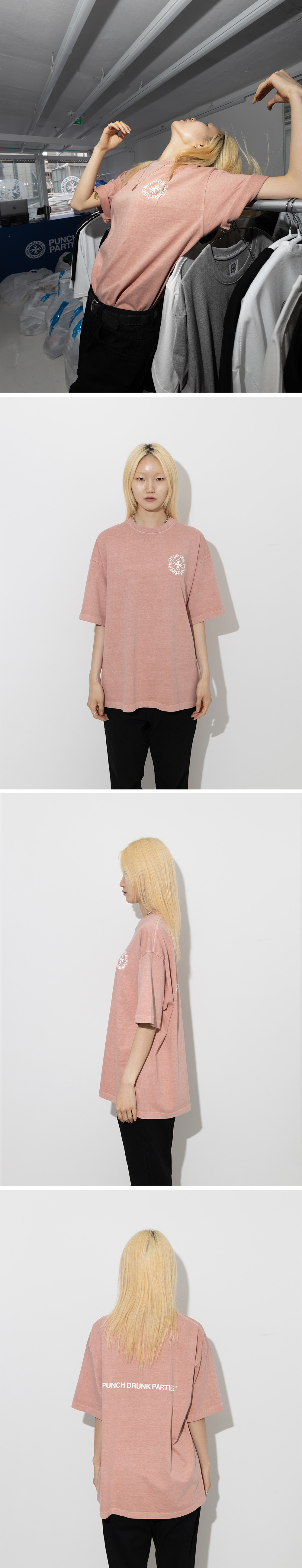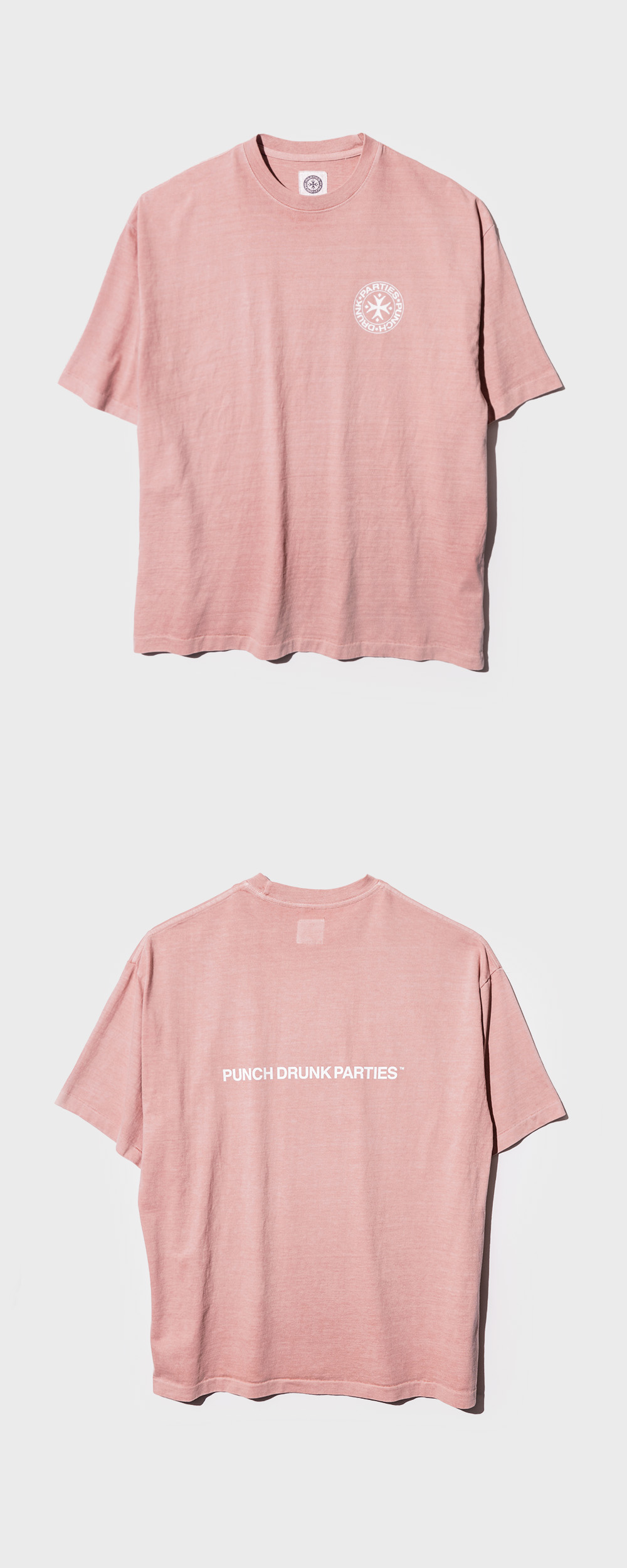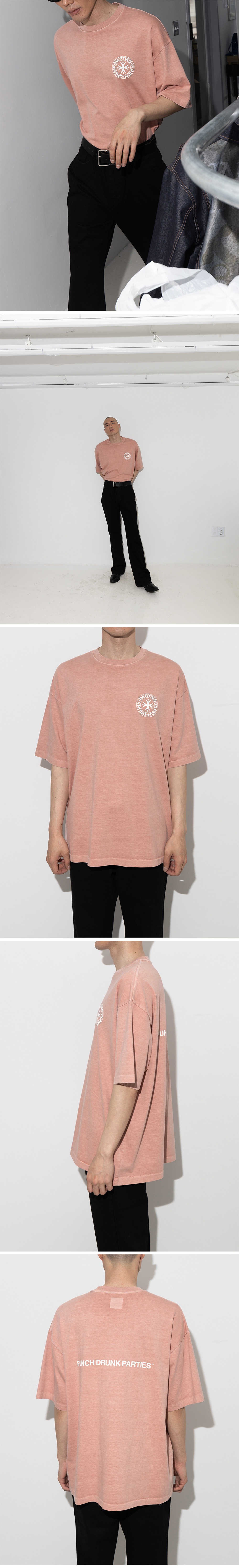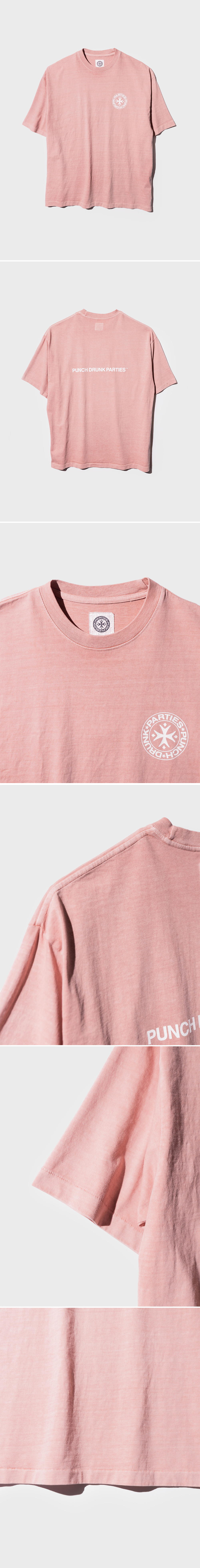 펀치 드렁크 파티즈 서클 로고 가먼트 다이드 티 인디 핑크