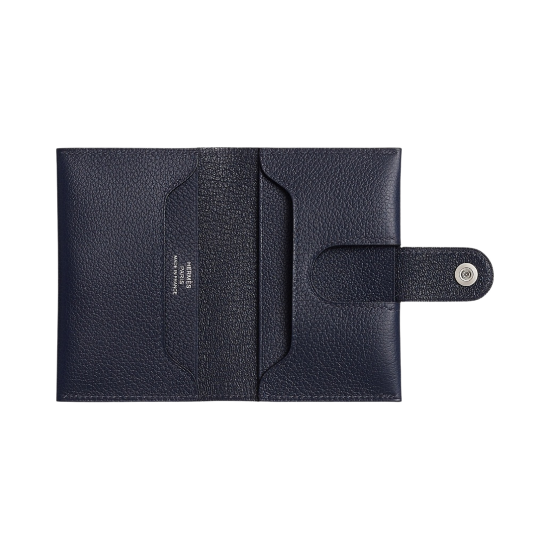 Hermes R.M.S Card Holder Evercolor & Palladium Bleu Nuit