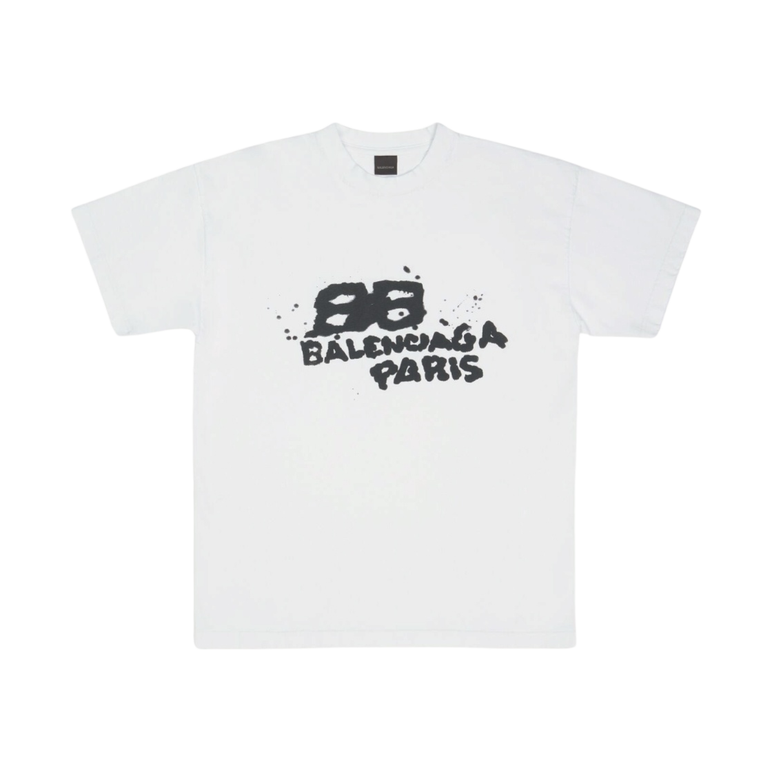 (W) Balenciaga Hand Drawn BB Icon Medium Fit T-Shirt White