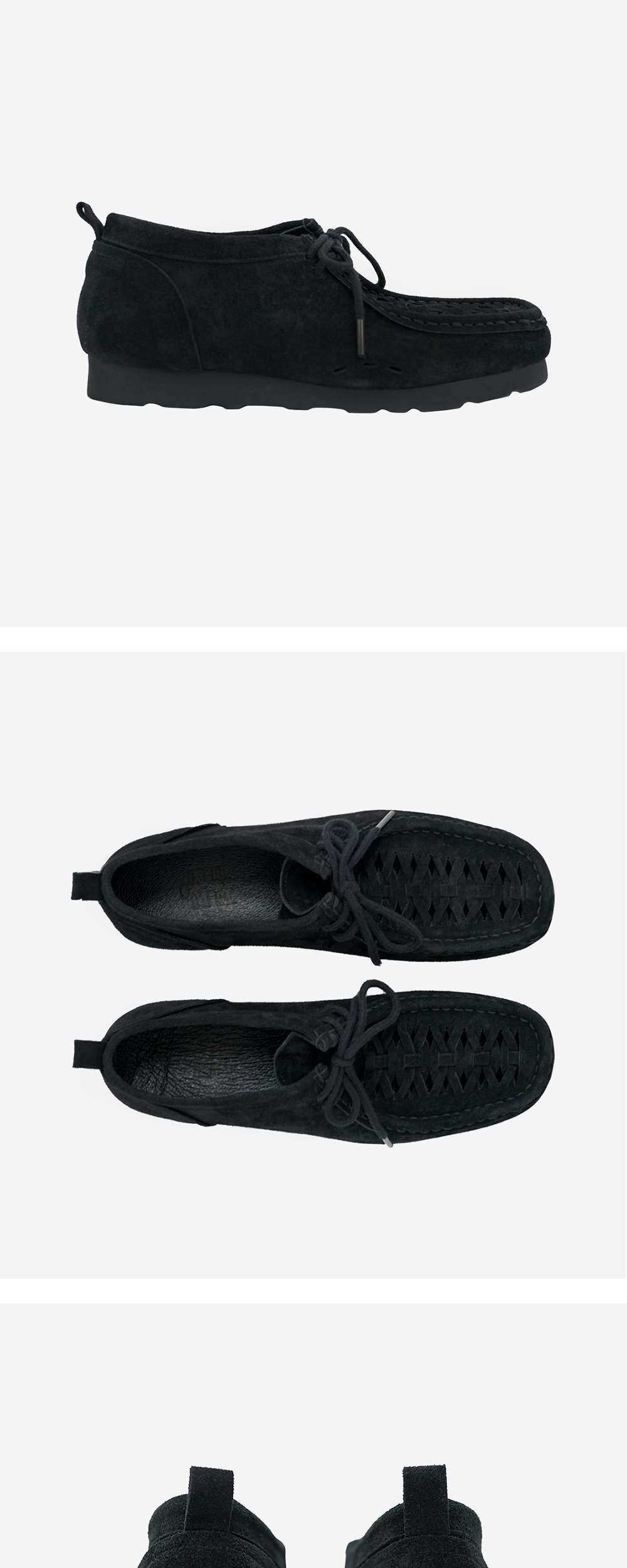 *본 제품은 예약주문 제품으로, 3/4(수) 15:00 ~ 3/8(일) 15:00까지 접수를 진행합니다. *5/8(금) ~ 5/12(화)부터 순차적으로 발송될 예정이며, 주문 완료 시점 기준 약 8~9주 소요됩니다. *제작 완료 시 예정된 일정보다 빠른 시일 내 발송될 수 있습니다. wallabee shoes, 폴리테루의 디자인 기조에 맞춰 새롭게 해석한 슈즈입니다. 적당히 낮게 깔리는 쉐입과, 기본 대비 조금 더 높게 설정한 굽 높이 등, 폴리테루 팬츠와 형태 및 뉘앙스 면에서 최적의 합을 고려해 설계했습니다. size 0 / 1 / 2 / 3 / 4 / 5 각 245 - 255 - 265 - 275 - 285 - 295 굽 높이 : 4cm (바깥 굽/속굽 합) *사이즈 팁 착화감 면에서는 개인차 있으나, 다운사이즈/정사이즈 추천드립니다. 상세한 사이즈 상담 원하시는 경우, CS 문의 남겨주시면 최선을 다해 도움드리겠습니다.
