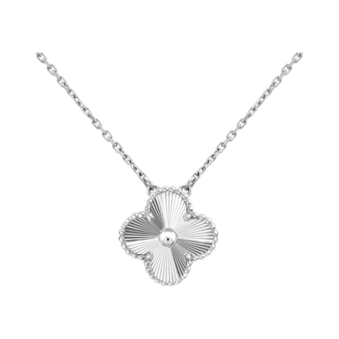 (W) Van Cleef & Arpels Vintage Alhambra Pendant Guilloche White Gold