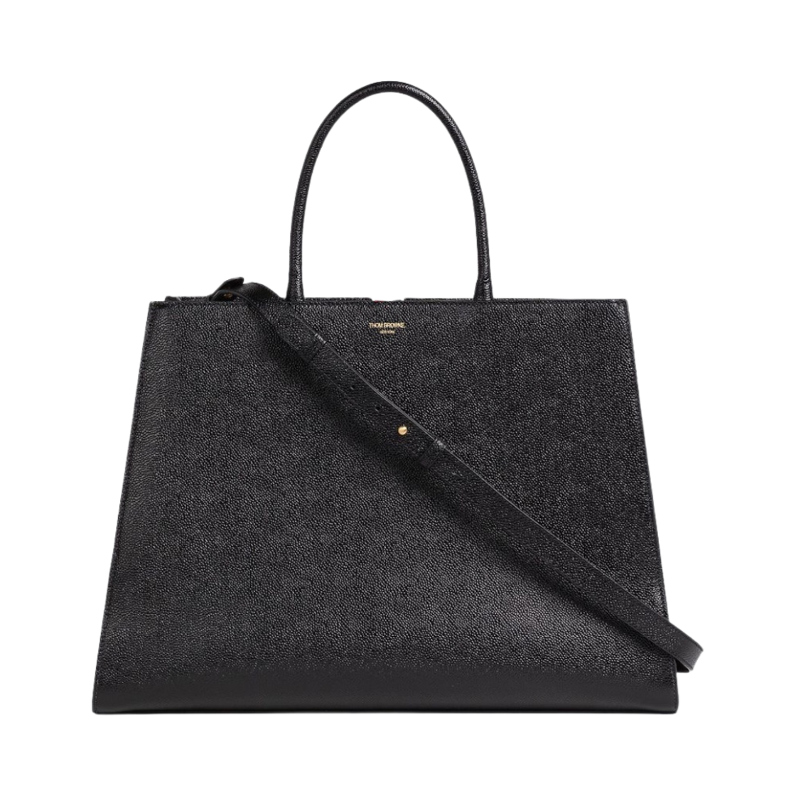 톰브라운 페블 그레인 레더 라지 트라페즈 토트백 블랙