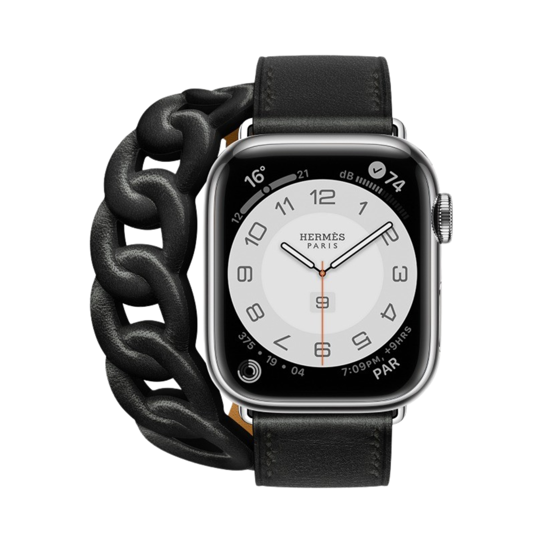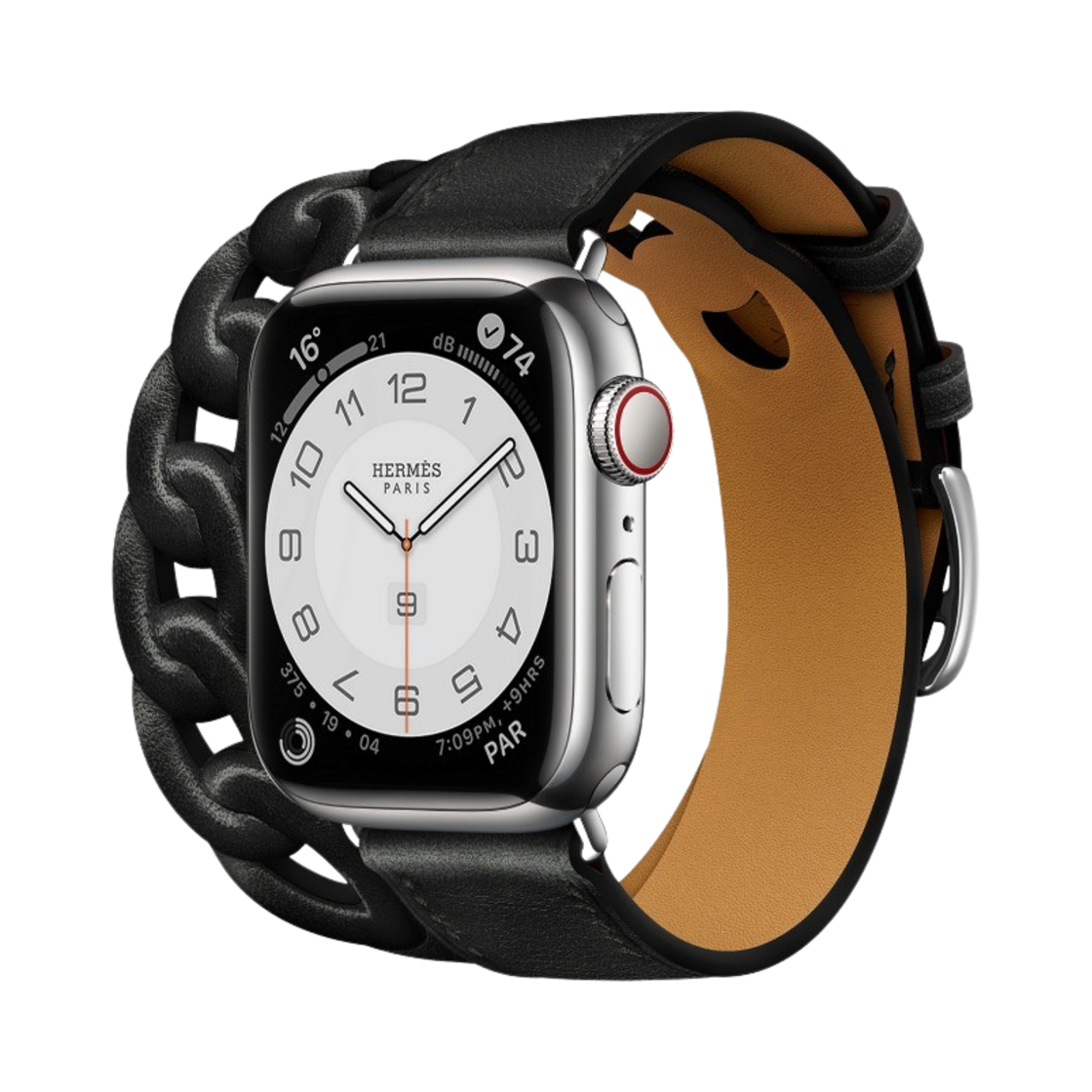 애플 워치 8 에르메스 41mm 실버 스테인리스 스틸 케이스 가죽 구르메 더블 투어 느와르 (국내 정식 발매 제품)