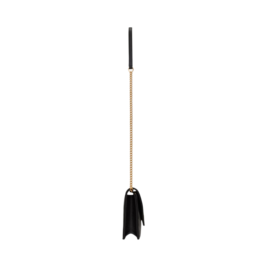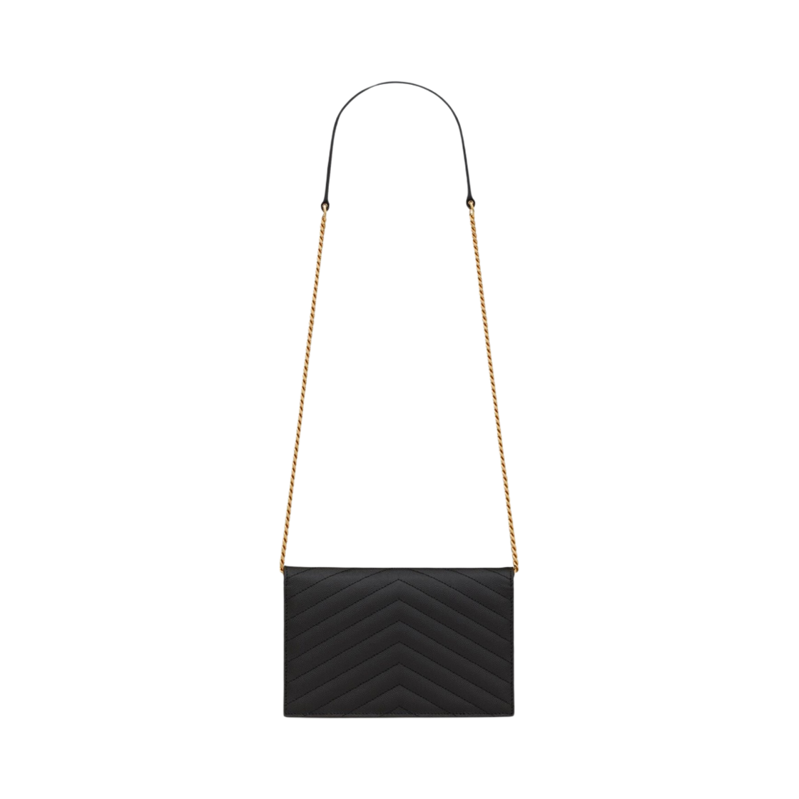 Saint Laurent Cassandre Matelasse Envelope Chain Wallet in Grain De Poudre Embossed Leather Black