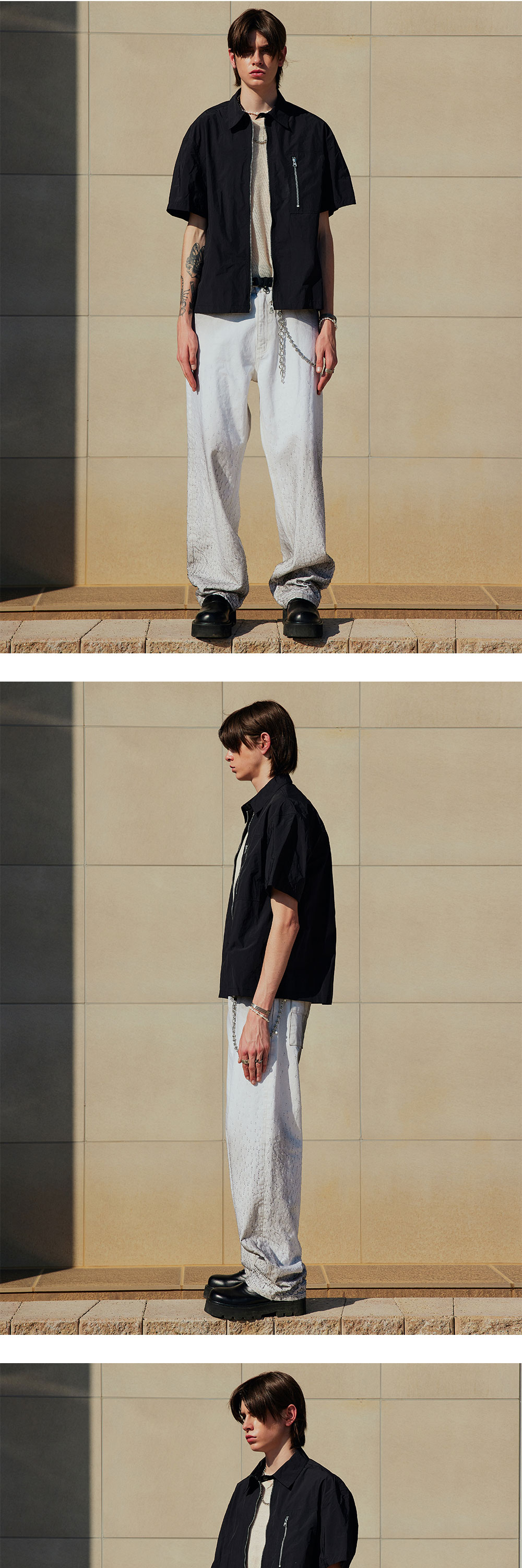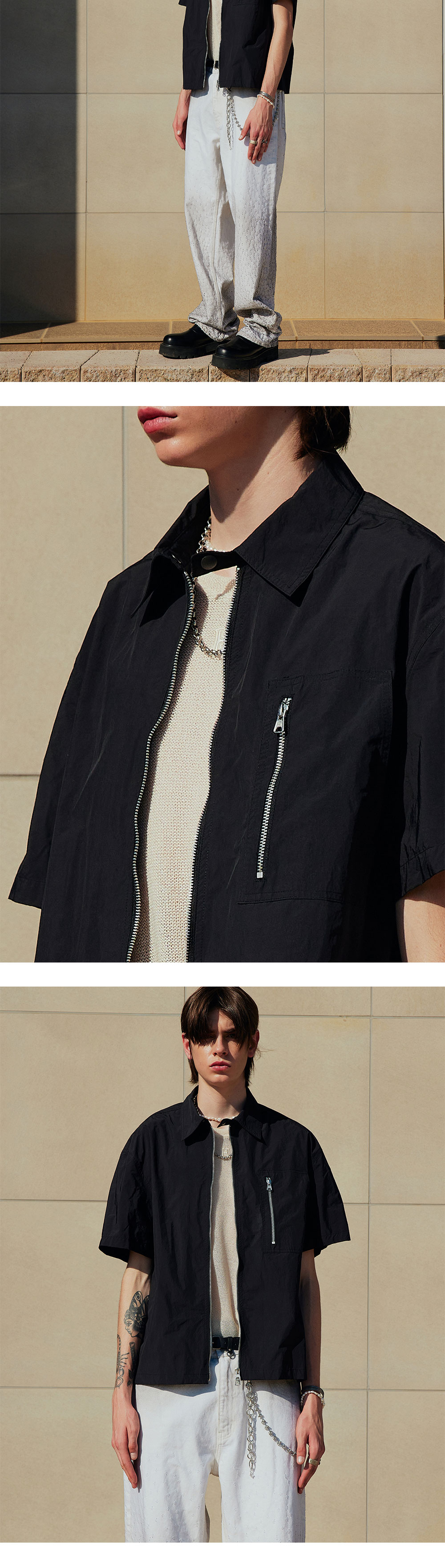 Haleine Carpenter Detail Recycle Nylon 1/2 Shirts Jacket Black