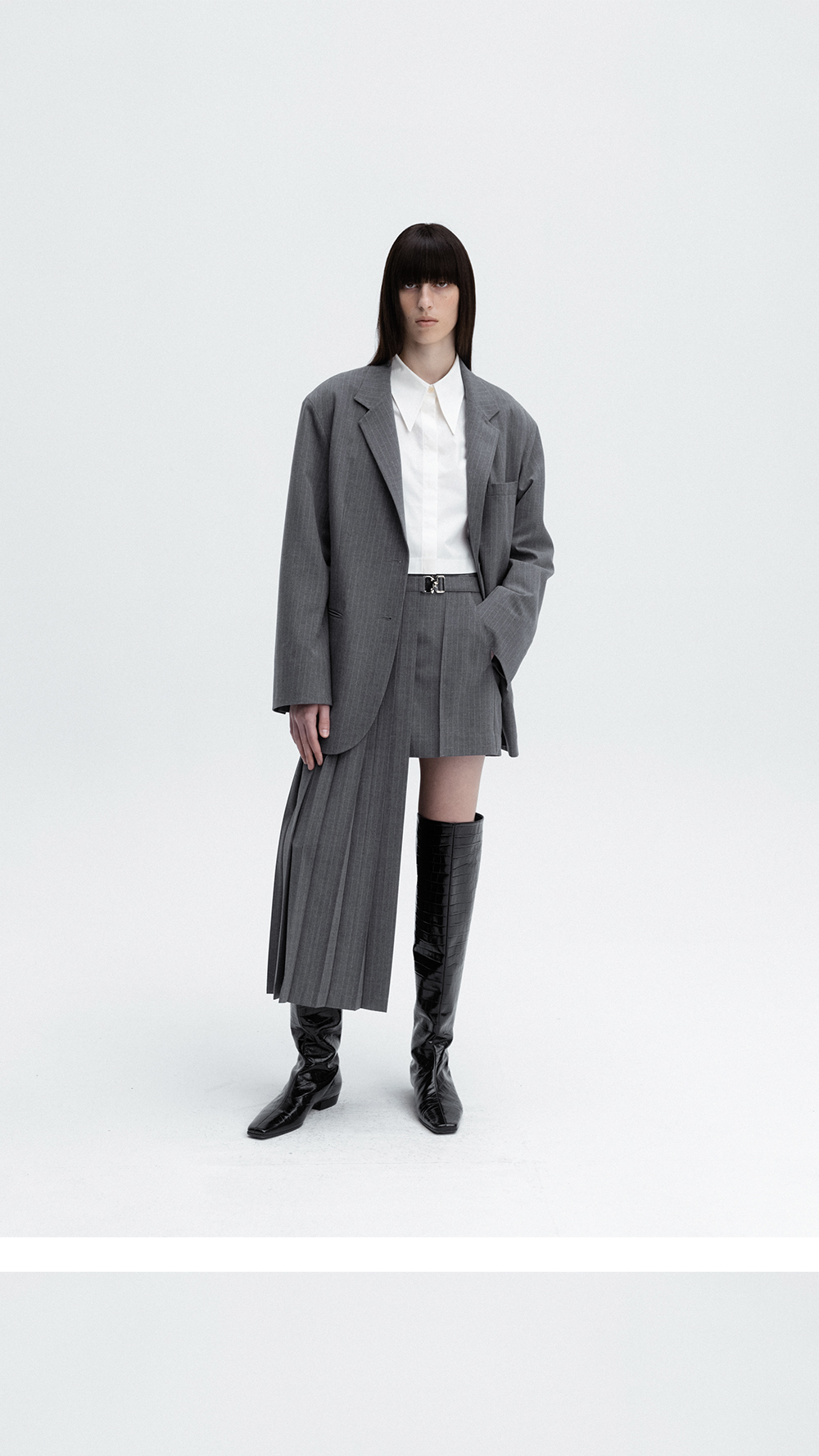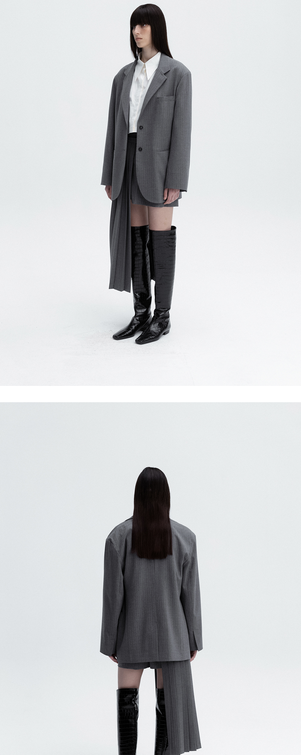 레하 우먼 캠든 드롭 숄더 자켓 그레이 핀스트라이프