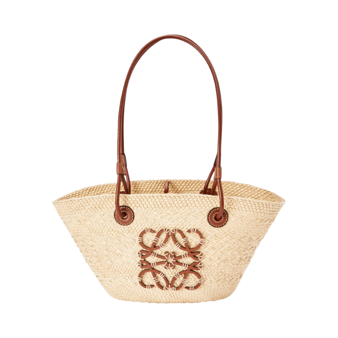 Loewe Small Anagram Basket Bag in Iraca Palm and Calfskin Natural Tan