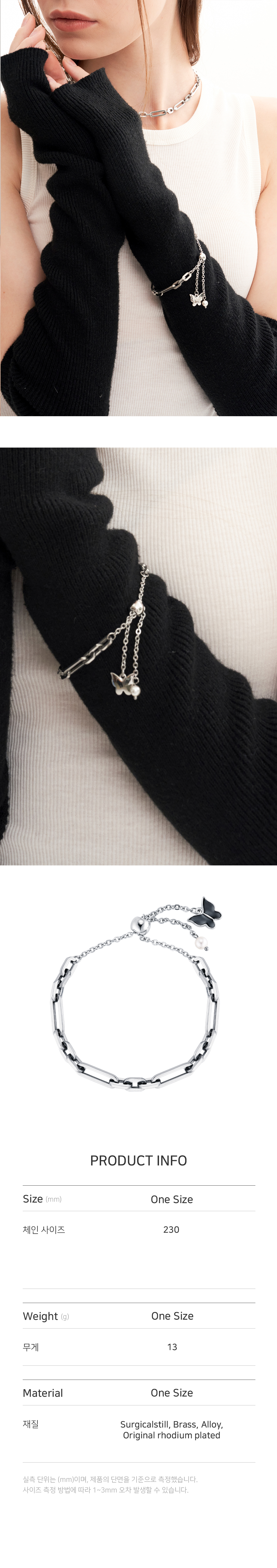 체인 뒤쪽에 위치한 볼 펜던트를 이용하여 최대 23cm까지 자유로운 길이조절이 가능합니다.
