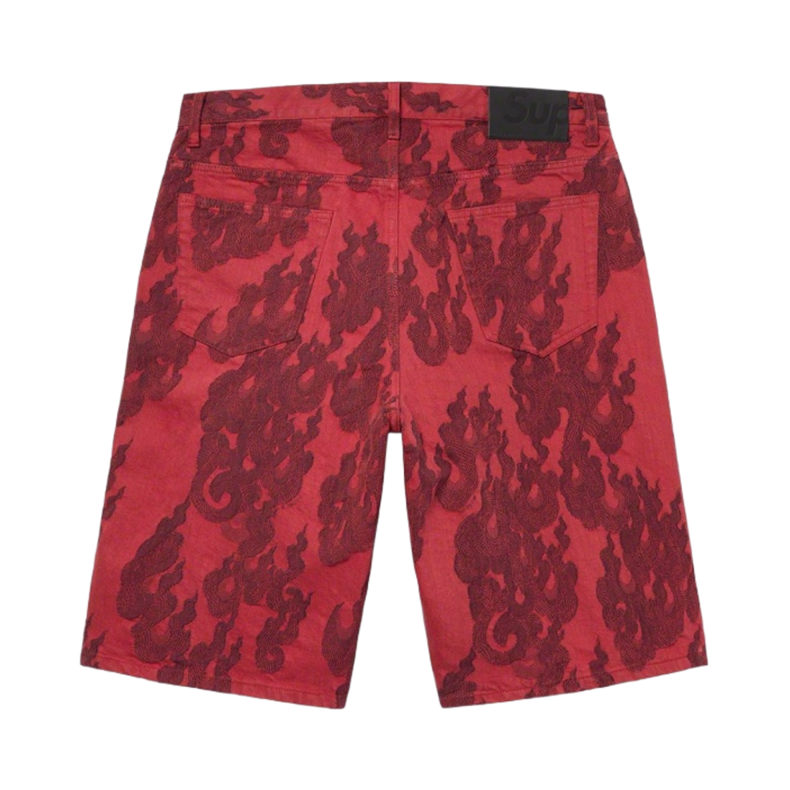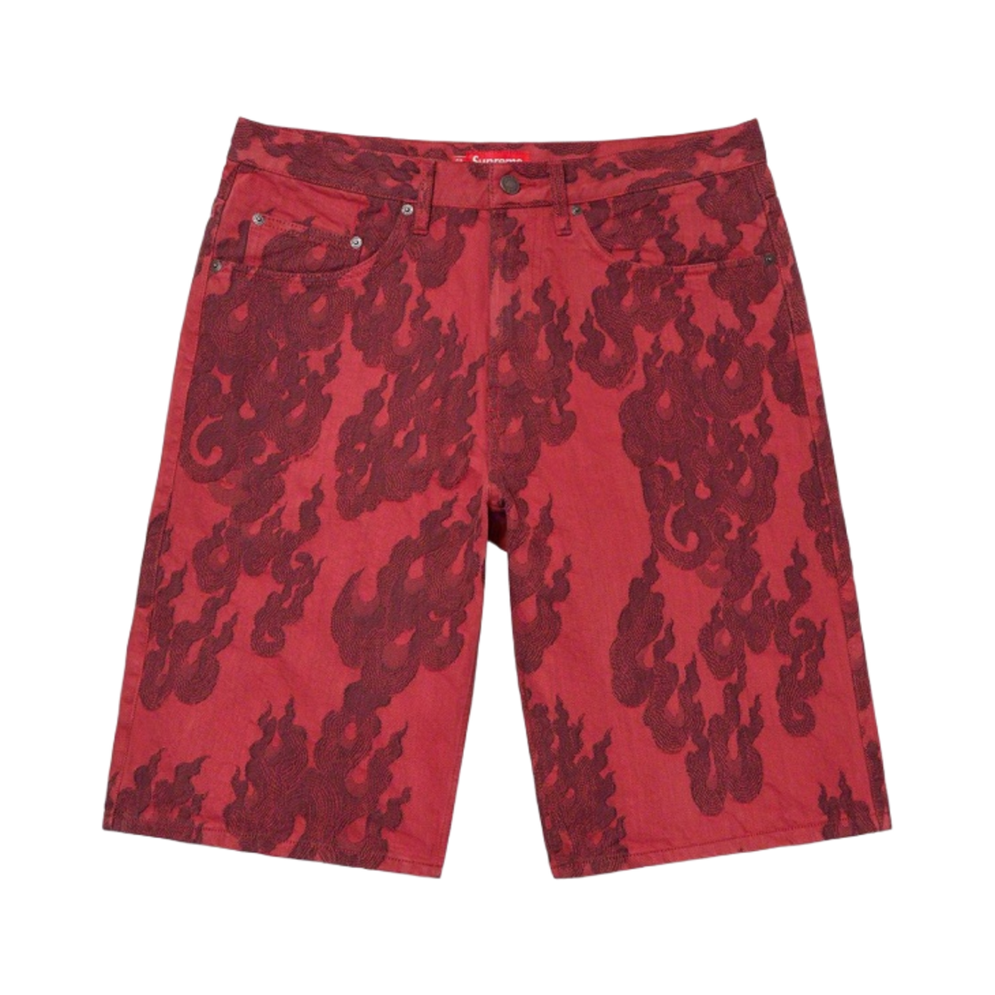 Supreme Flames Jacquard Baggy Denim Shorts Washed Red - 23SS