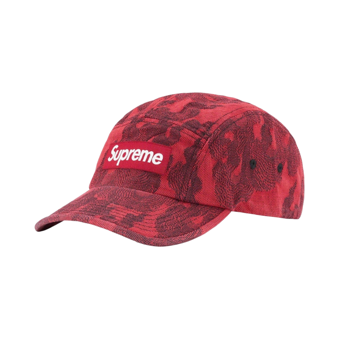 슈프림 플레임 자카드 데님 캠프캡 워시드 레드 - 23SS