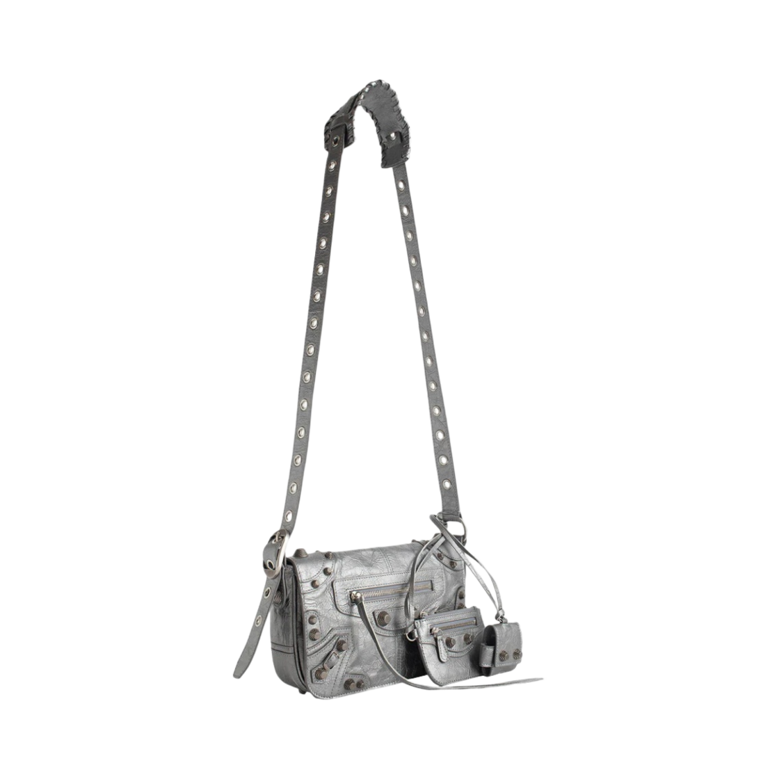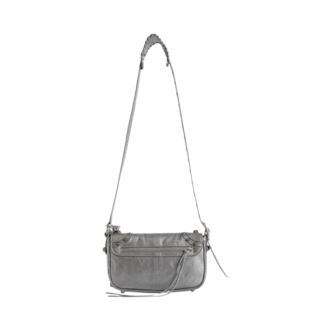 Balenciaga Arena Lambskin Aged Silver Hardware Le Cagole Metallic XS Flap Bag Silver