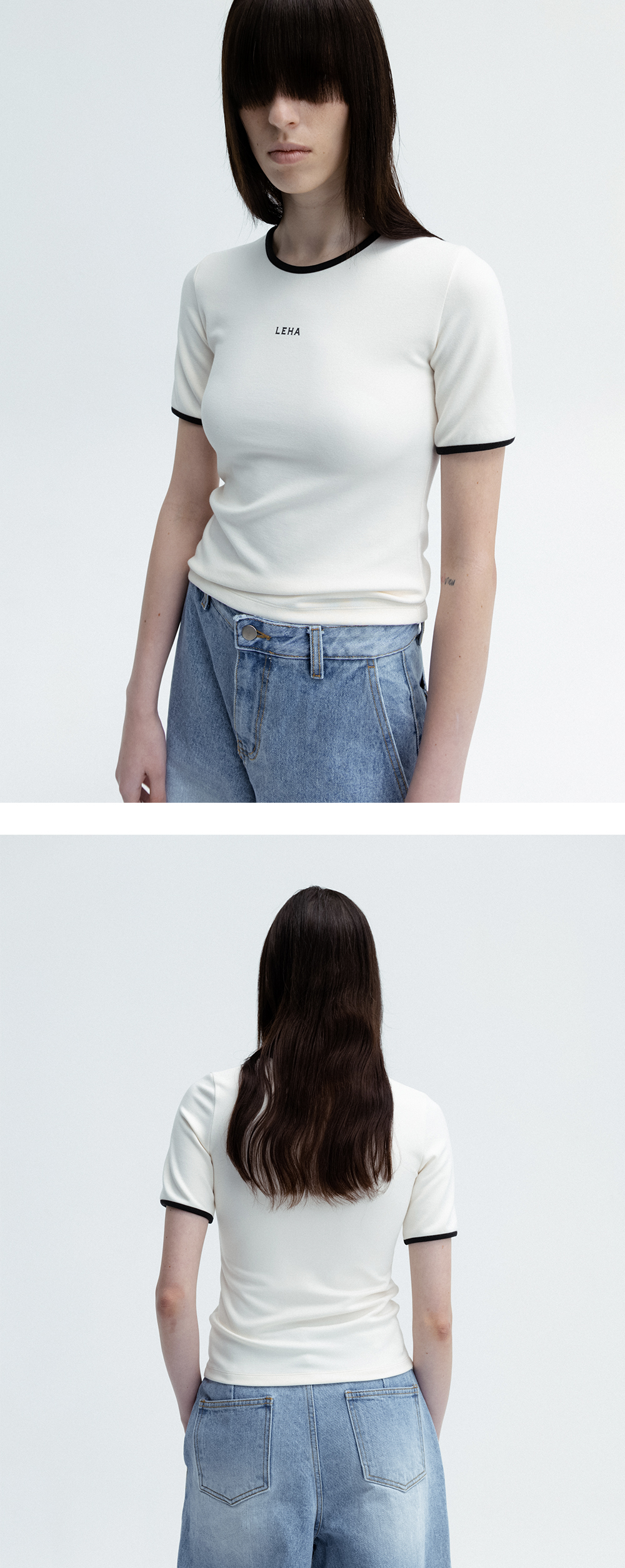레하 우먼 케이지 티셔츠 화이트