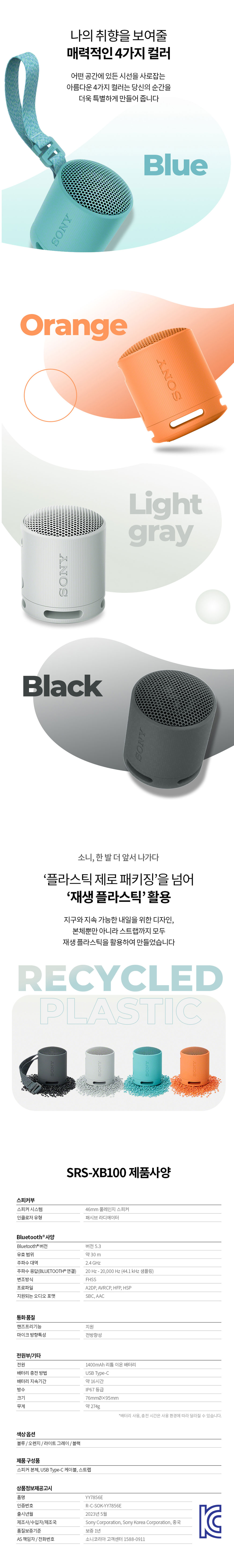 소니 SRS-XB100 라이트 그레이 (소니 코리아 정식 발매 제품)
