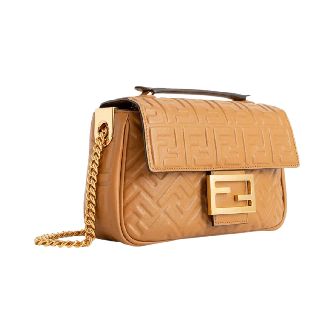 Fendi Baguette Chain Midi Leather Bag Caramel