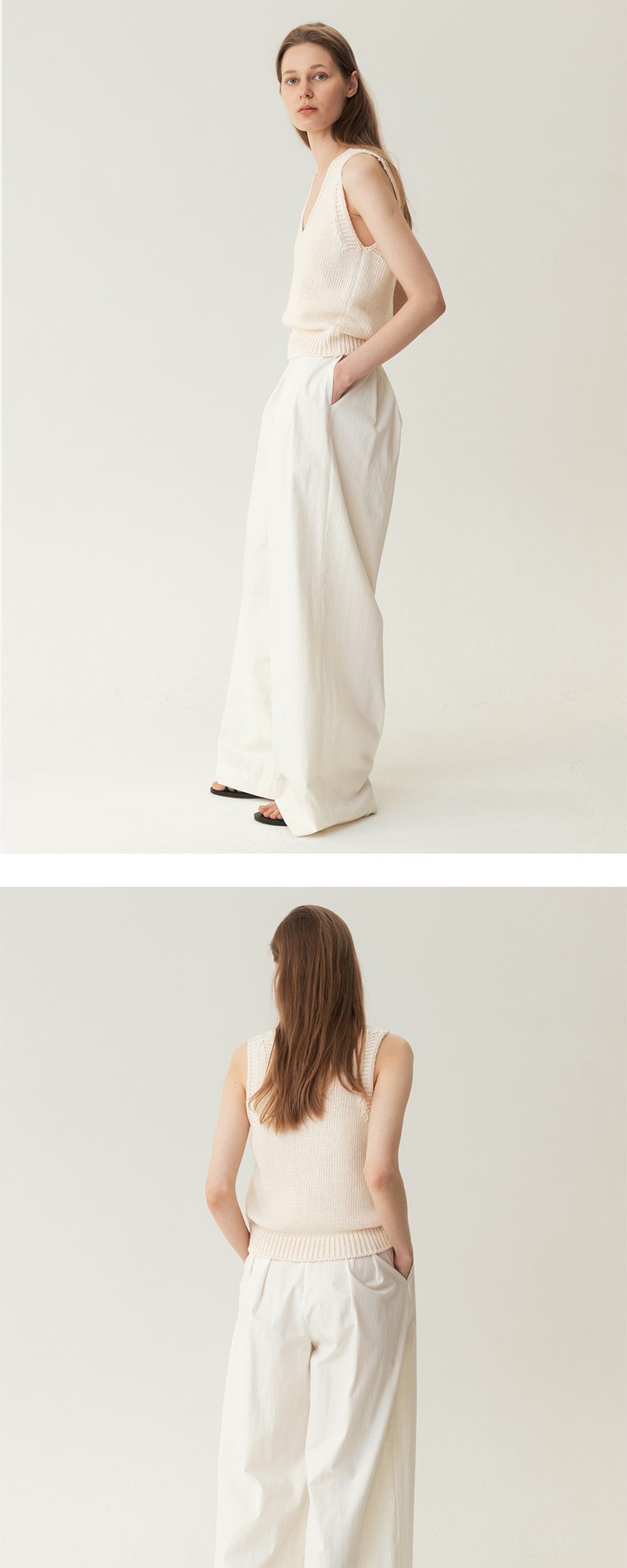 세미 하이웨이스트 라인에 넓은 벨트를 구성하여 허리라인을 힘있게 잡아주며, 와이드하게 퍼지는 실루엣의 팬츠입니다. 뒤 혼솔 지퍼로 더욱 깔끔한 연출이 가능합니다.