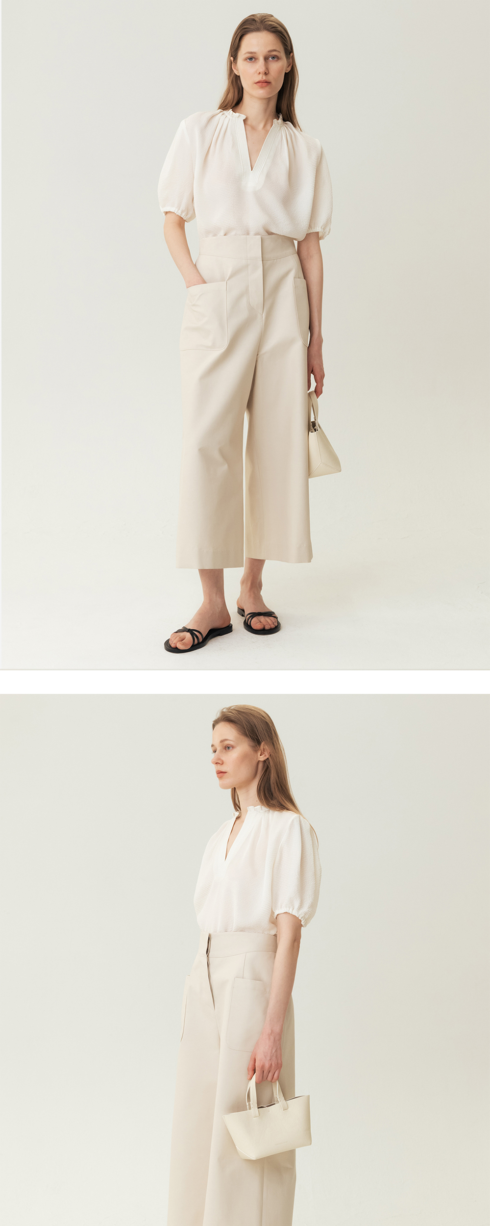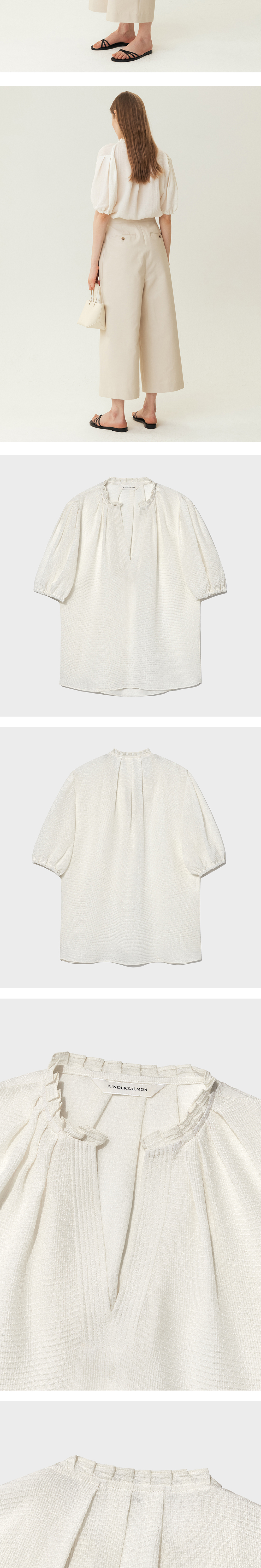 킨더살몬 우먼 실크 자카드 하프 블라우스 크림