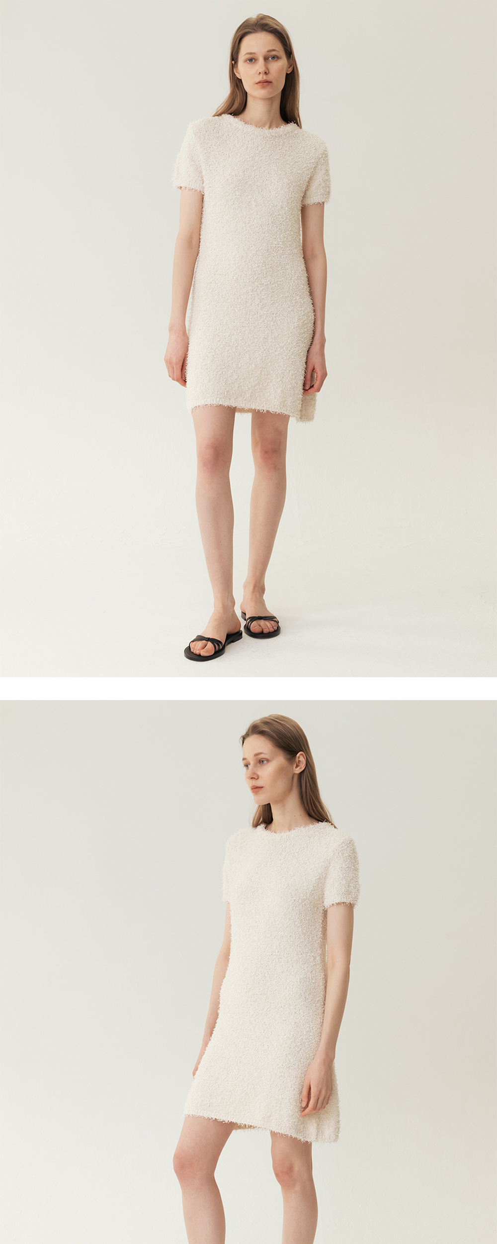 입체감 있는 독특한 텍스쳐가 느껴지는 원사로 미니멀한 실루엣에 포인트가 되도록 짠 니트 드레스입니다. 하프 소매와 미디 기장으로 부담 없이 편안한 활동이 가능합니다.