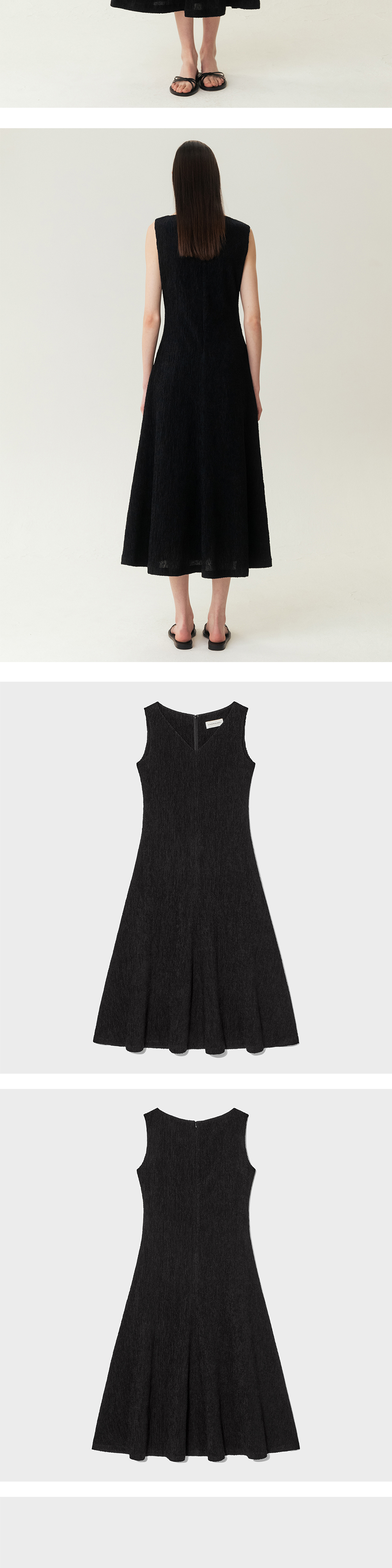 과하지 않은 브이넥라인과 자연스럽게 훌지는 실루엣이 페미닌한 슬리브리스 드레스입니다. 텍스쳐감있게 잡힌 주름이 독특한 매력을 더합니다. 일본 Stylem사의 프리미엄 원단을 사용하여 더욱 우아한 소재감을 자랑합니다.