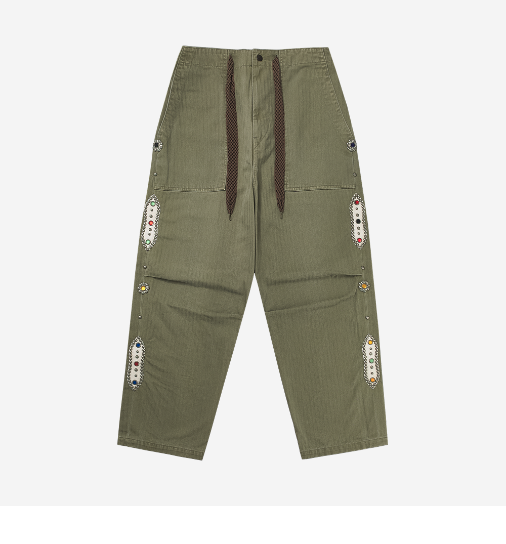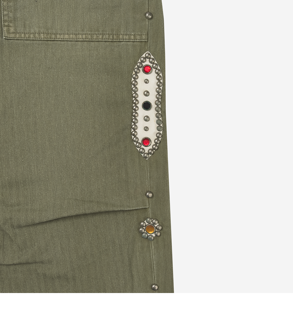 캐피탈 설퍼라이즈드 헤링본 이지 베이커 팬츠 스터드 리메이크 카키