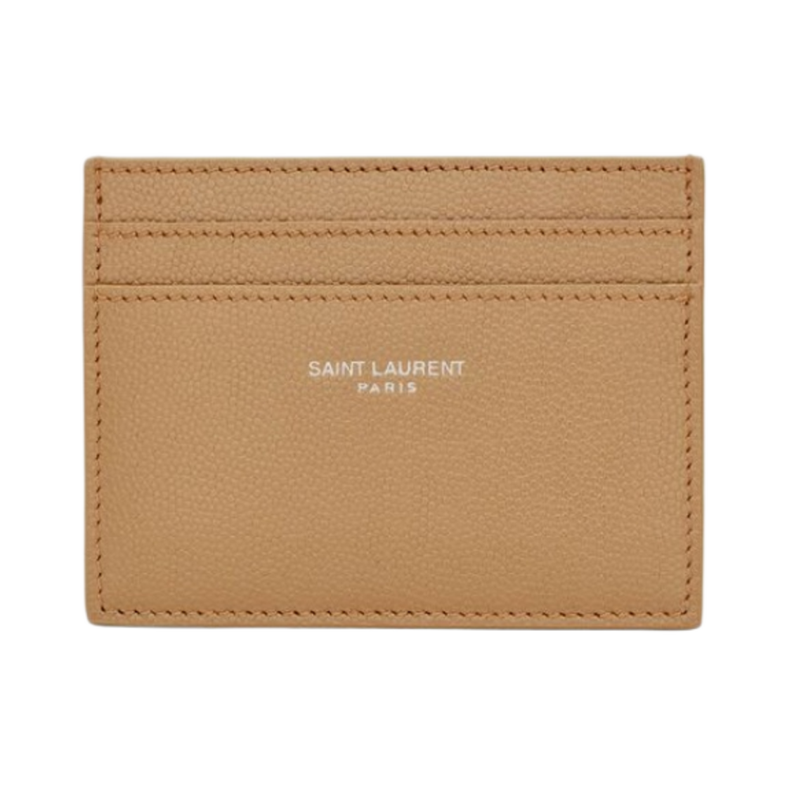 Saint Laurent Paris Credit Card Case in Grain De Poudre Embossed Leather Teak Wood